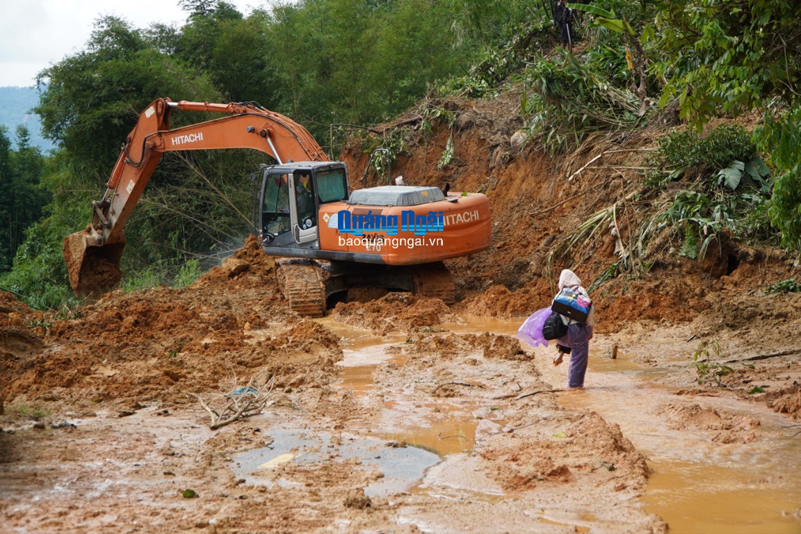 Anh Hồ Văn Quang, nhà ở thôn Gò Rô, xã Tây Trà, đang công tác tại xã Tây Trà Bồng cho biết, mấy hôm nay sạt lở, không còn đường, anh phải đi bộ lội bùn, trèo đồi đến cơ quan. “Mất nhiều thời gian và bất an lắm. Đây là tuyến đường rất quan trọng với bà con mình. Mình mong sớm giải tỏa đống sạt lở, thông tuyến sớm để bà con đi lại an toàn”, anh Hồ Văn Quang kiến nghị.
