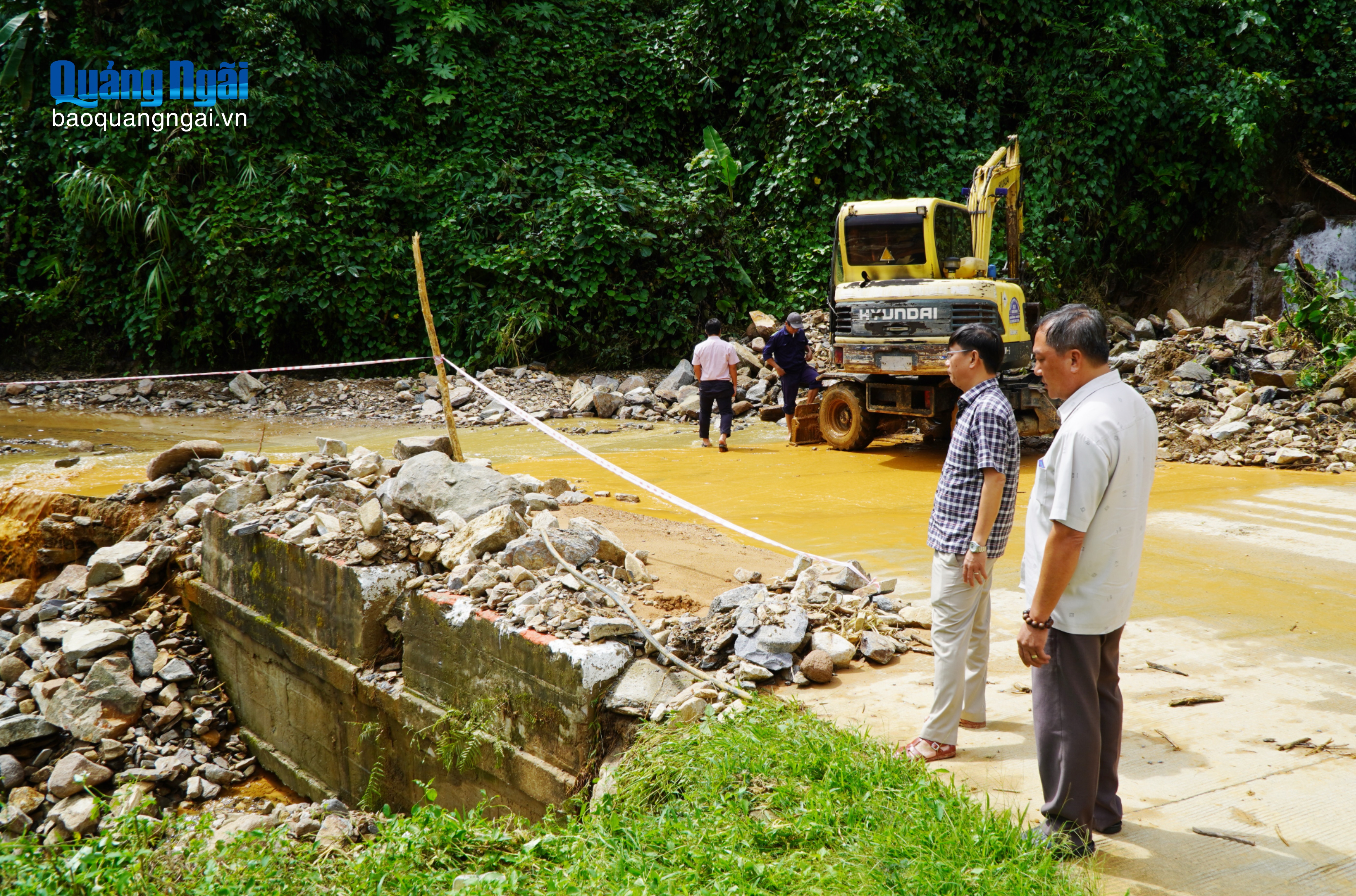 Cán bộ Sở Xây dựng bám sát hiện trường chỉ đạo khắc phục sạt lở, thông tuyến giao thông tại ĐT622B.
