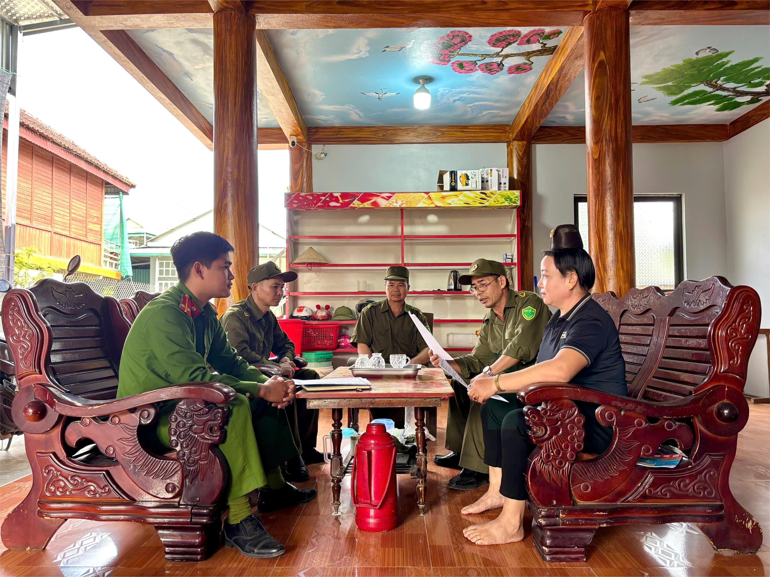 Công an phường Mường Thanh phối hợp với tổ an ninh trật tự cơ sở tuyên truyền, vận động nhân dân bản Ten B về tác hại của ma túy.