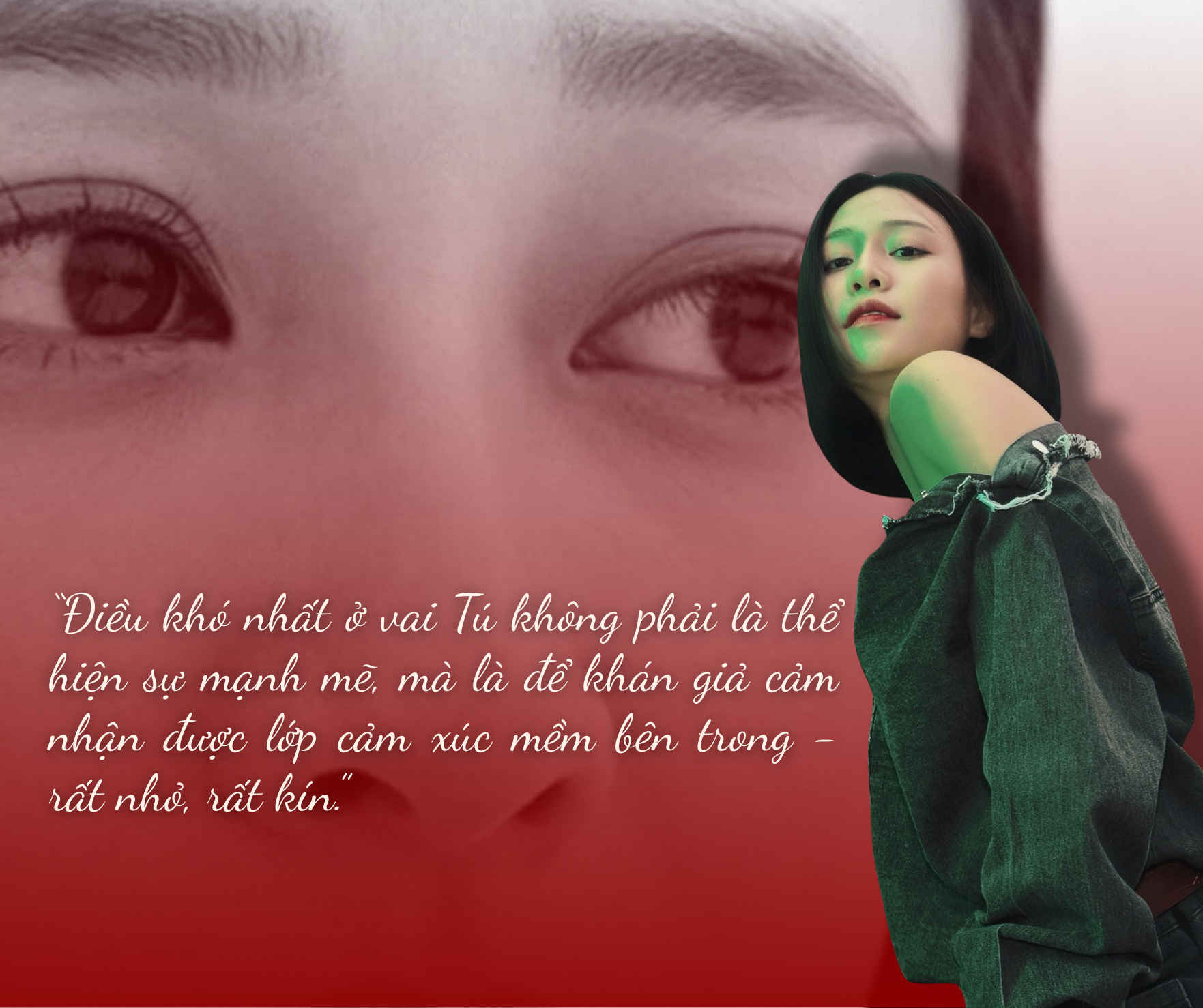 Theo chia sẻ của nữ diễn viên, khó khăn lớn nhất khi hóa thân vào nhân vật Minh Tú không nằm ở việc thể hiện sự mạnh mẽ, mà là cách truyền tải những lớp cảm xúc mềm mỏng bên trong. Những rung động nhỏ được cô tập trung thể hiện qua ánh mắt, nhịp thở và những khoảnh khắc im lặng trên màn ảnh.