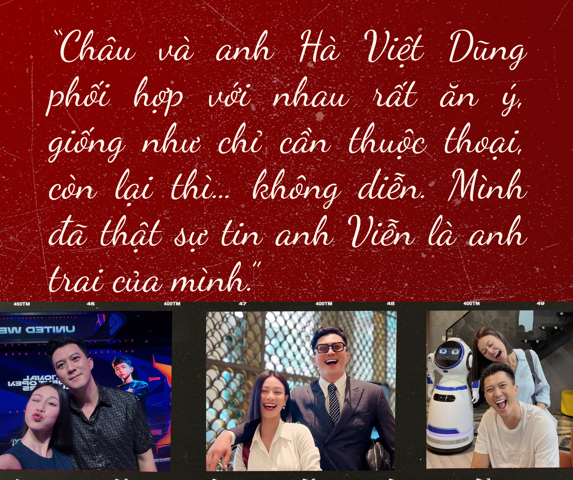 Trong dàn diễn viên đông đảo của bộ phim, Quỳnh Châu khẳng định Hà Việt Dũng là bạn diễn khiến cô ấn tượng nhất. Cả hai phối hợp tự nhiên đến mức nhiều cảnh quay chỉ cần thuộc thoại, phần còn lại diễn ra rất chân thực mà không cần diễn xuất quá nhiều.