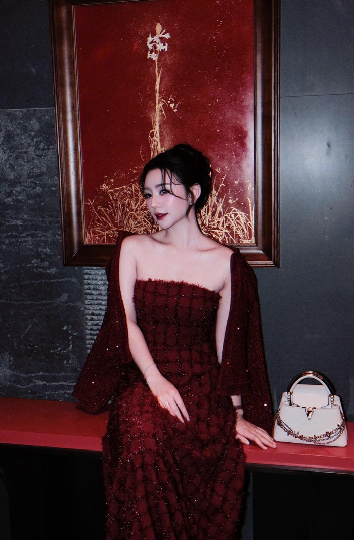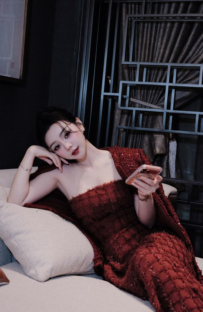 Trong những bức hình được chia sẻ, Quỳnh Kool xuất hiện với phong thái nhẹ nhàng, trầm lắng. Cô lựa chọn trang phục tông đỏ trầm, thiết kế thanh lịch, tôn lên vóc dáng gọn gàng cùng vẻ đẹp nữ tính. Không tạo dáng cầu kỳ, nữ diễn viên chủ yếu thể hiện sự thư thái qua ánh mắt và cử chỉ, mang đến cảm giác điềm đạm, chín chắn hơn so với hình ảnh quen thuộc trước đây.