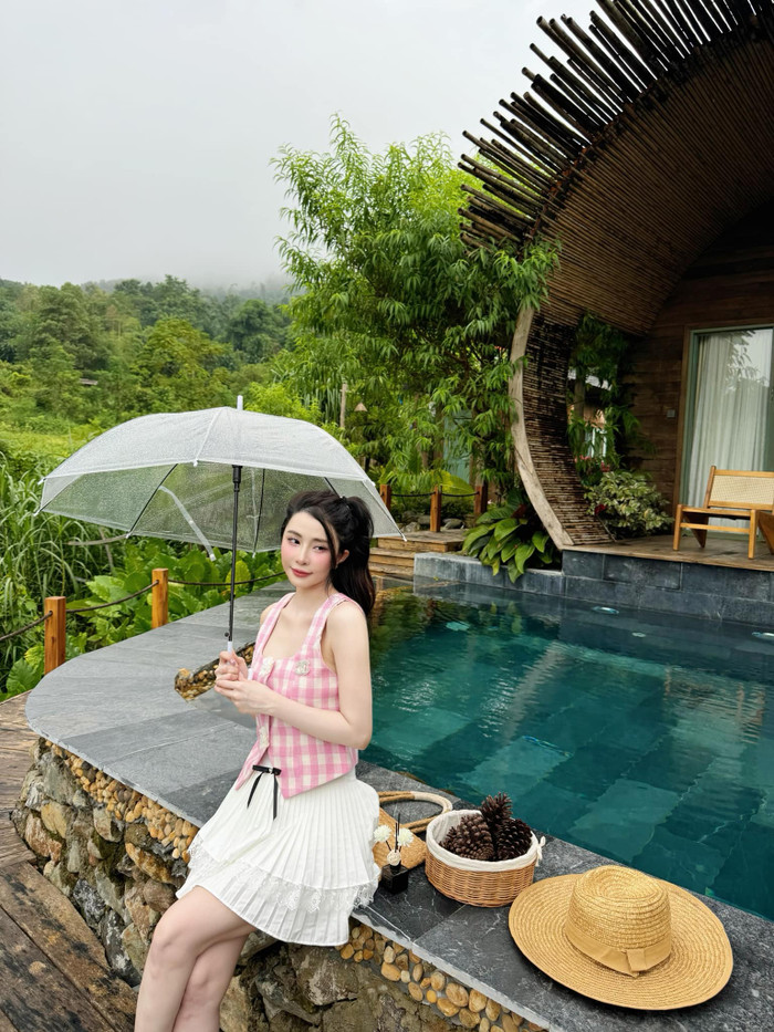 Những chi tiết nhỏ như dây chuyền mảnh, khuyên tai ngọc trai hoặc sandal cao gót thanh thoát góp phần tạo nên tổng thể hài hòa nhưng đẳng cấp.