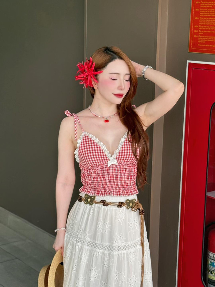 Các thiết kế áo hai dây ôm sát vừa đủ, không quá mỏng hay khoét sâu, giúp tôn vẻ gợi cảm một cách khéo léo. (Ảnh FBNV)