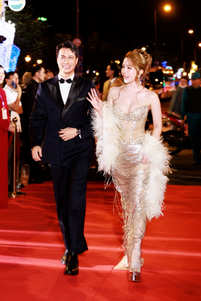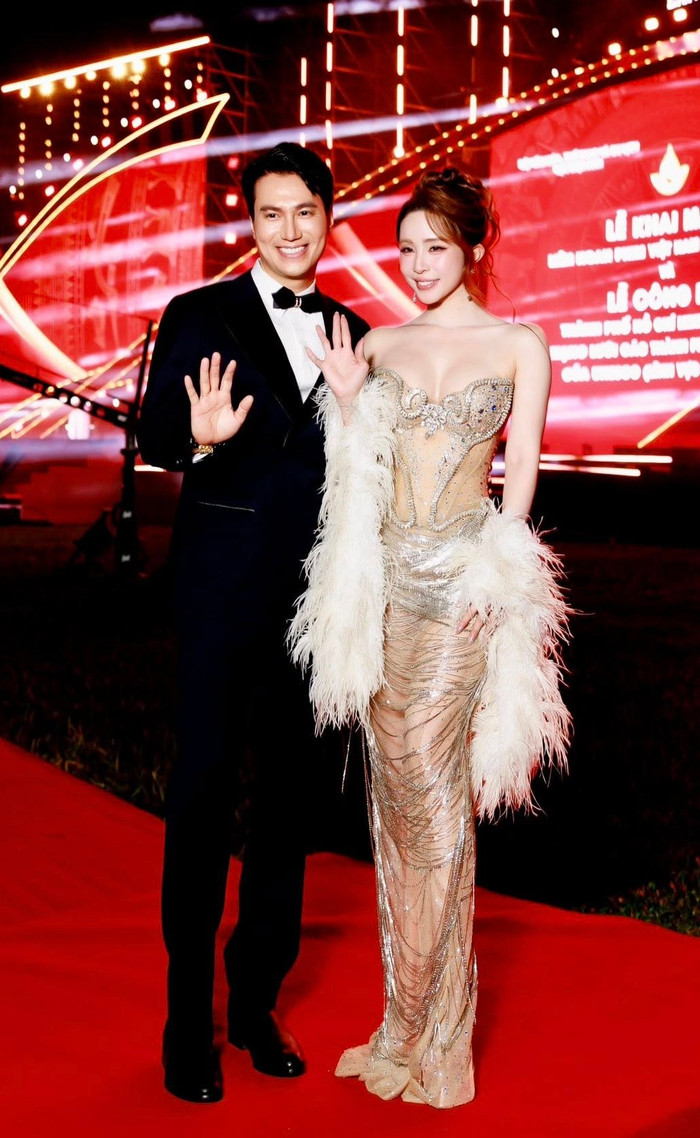 Quỳnh Nga diện trang phục táo bạo, sánh đôi bên cạnh Việt Anh tại một sự kiện gần đây. (Ảnh FBNV)