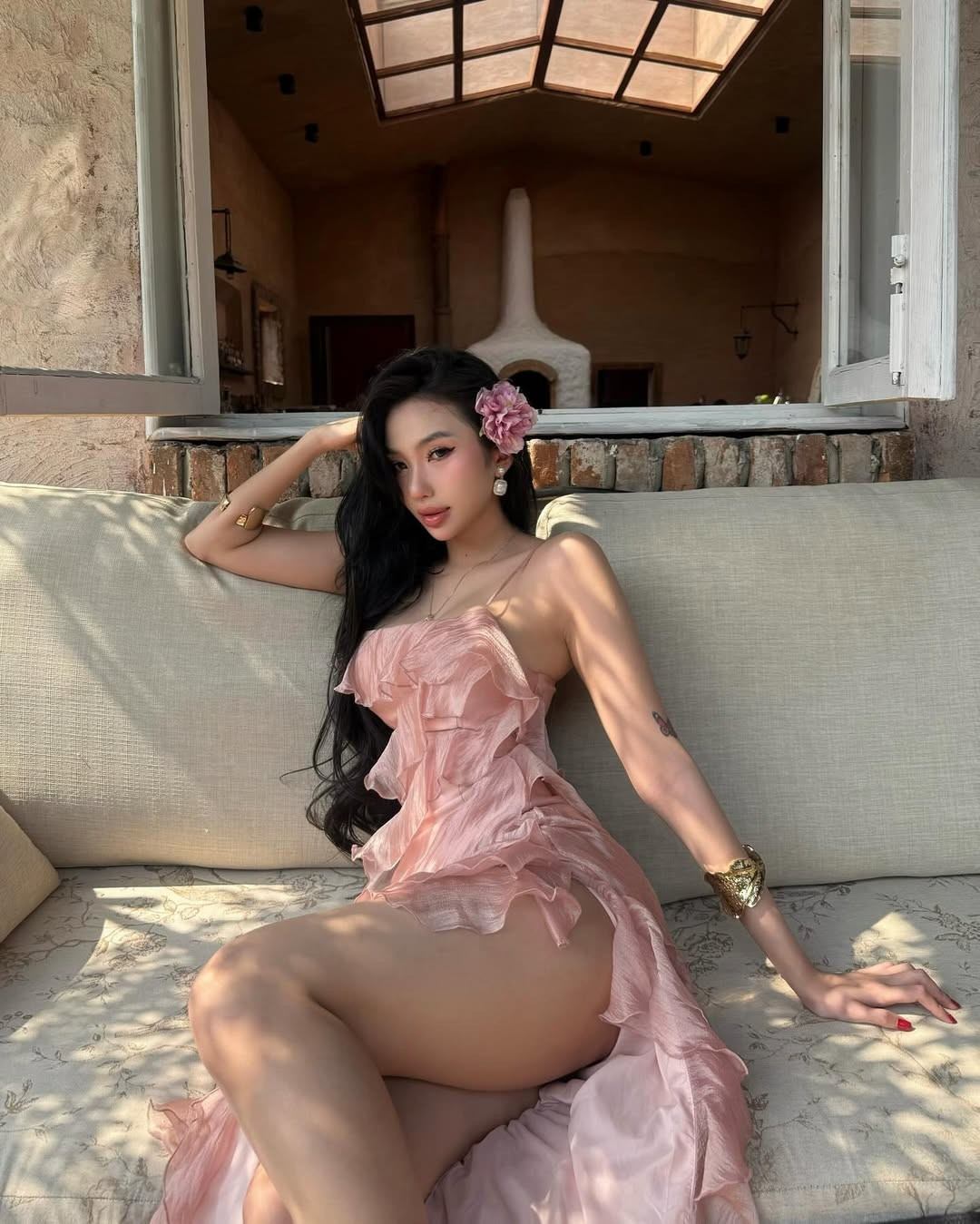 Loạt ảnh mới nhất của TikToker Quỳnh Như đã nhanh chóng trở thành tâm điểm trên mạng xã hội, không chỉ vì thần thái cuốn hút mà còn bởi sự kết hợp hoàn hảo giữa trang phục độc đáo và bối cảnh kiến trúc cổ điển. (Ảnh: IGNV)