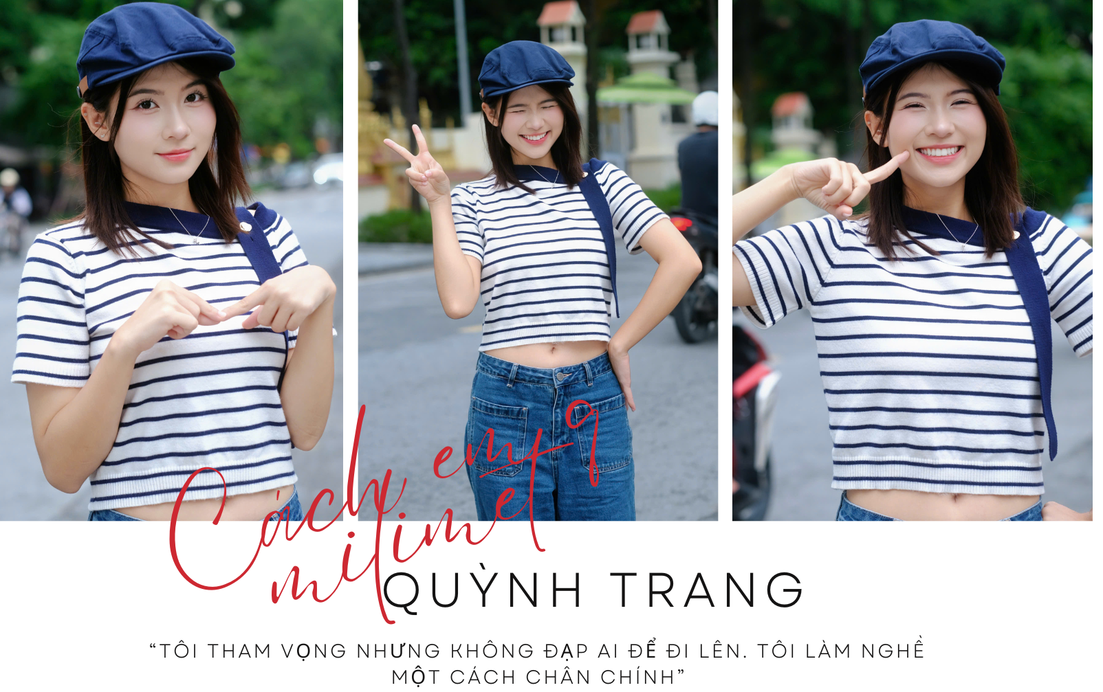 “Tôi thích thành tích nhưng không vì thành tích để làm mọi giá. Tôi tham vọng nhưng không đạp ai để đi lên. Tôi làm nghề một cách chân chính”, cô nói.