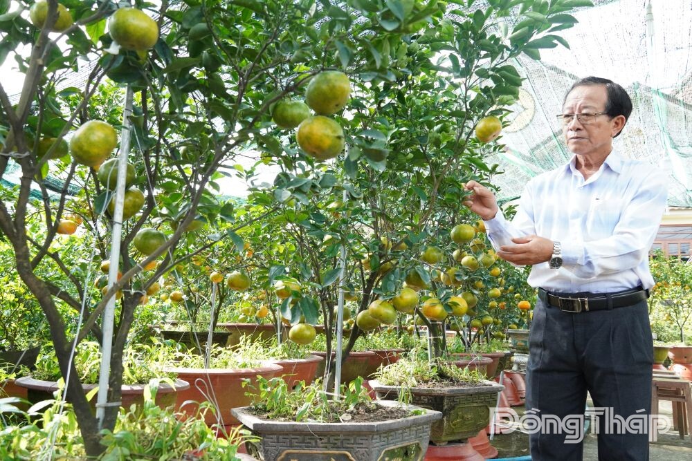 Vụ Tết Nguyên đán năm nay, nhà vườn Lưu Văn Khiêm (ấp Hòa Khánh, xã Phong Hòa) trồng hơn 250 chậu quýt hồng. Hiện, để đảm bảo thị hiếu thị trường, quýt trồng trong chậu đang được ông Khiêm chỉnh sửa cho tán cây đẹp; đồng thời, neo trái để không bị rụng khi di chuyển.