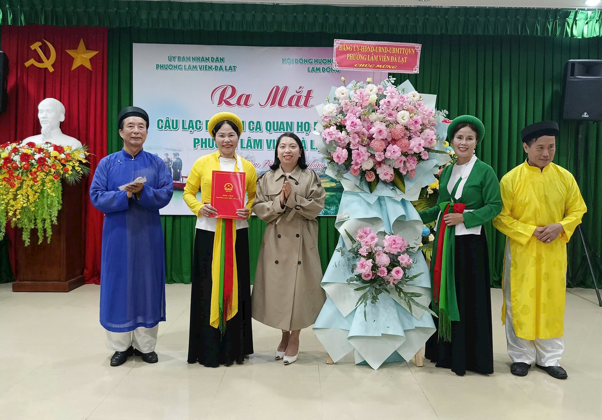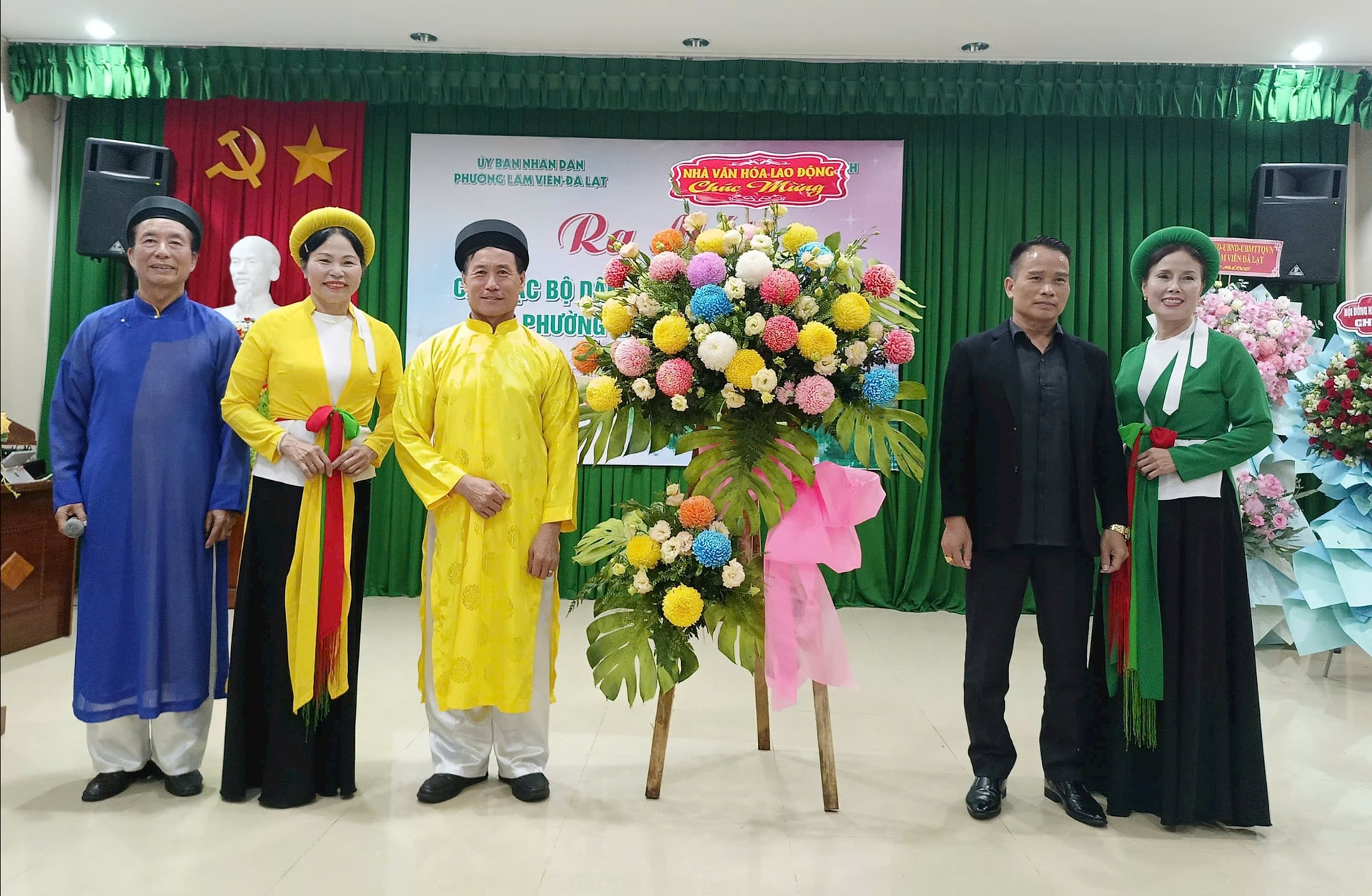 Đại diện lãnh đạo phường Lâm Viên - Đà Lạt trao quyết định thành lập CLB và tặng hoa chúc mừng