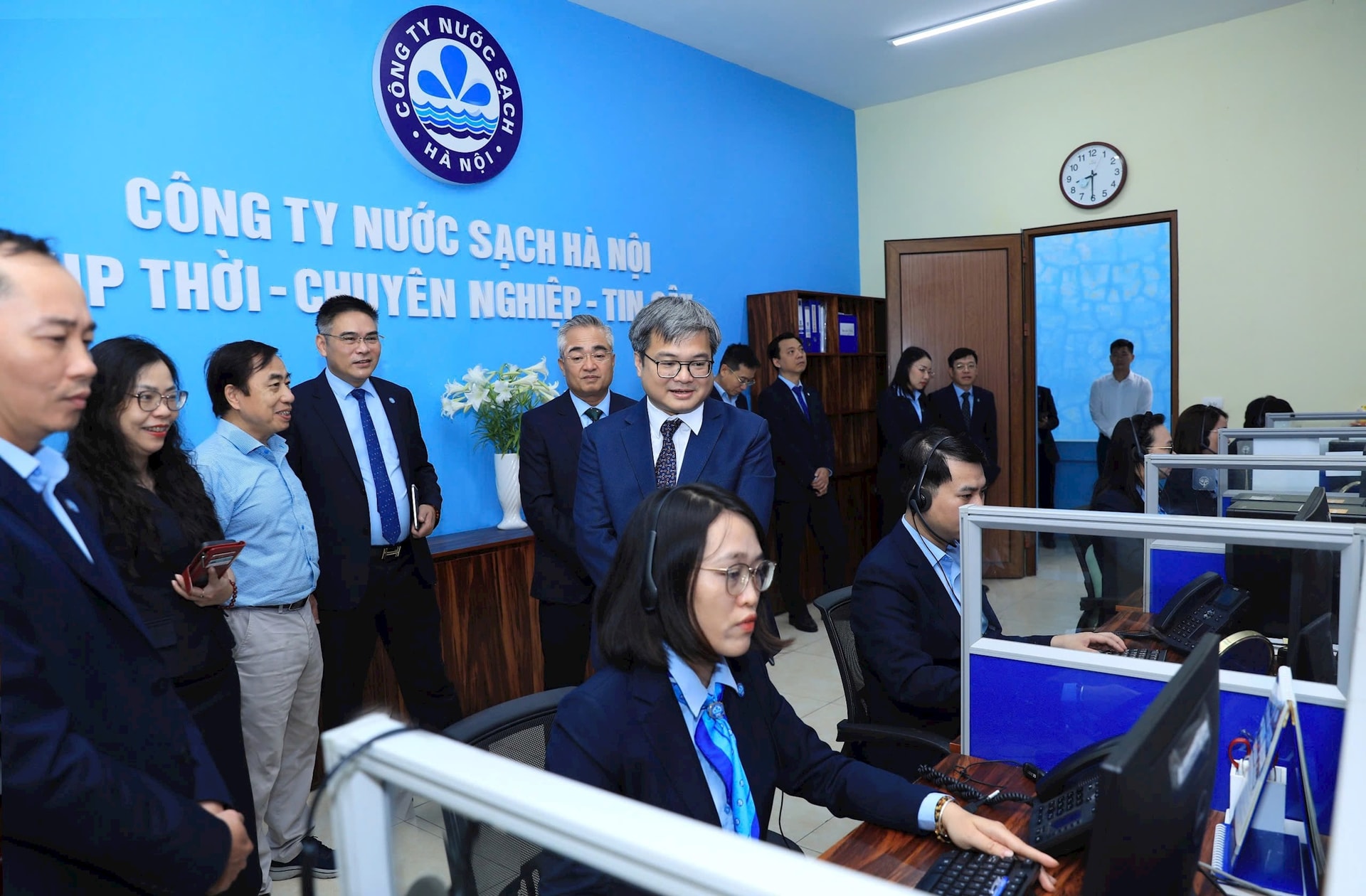 Phó Chủ tịch UBND thành phố Hà Nội Trương Việt Dũng tham quan Công ty Nước sạch Hà Nội. Ảnh: HT