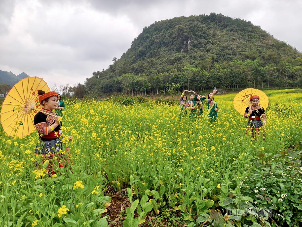 Vẻ đẹp hoa cải ở “Thung lũng hoa Núi Đôi” thu hút nhiều du khách.