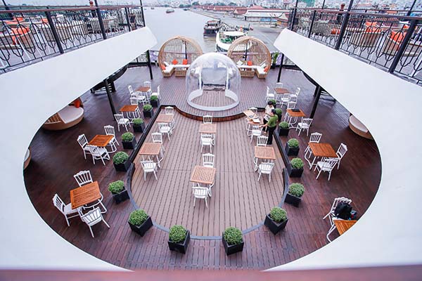 Khu vực tầng 5 là hương vị thế giới ReverRabat với sản tiệc lớn và tầng 5 Rever Sky lounge rộng 1.100m² sở hữu tầm nhìn 360 độ toàn cảnh sông Sài Gòn.