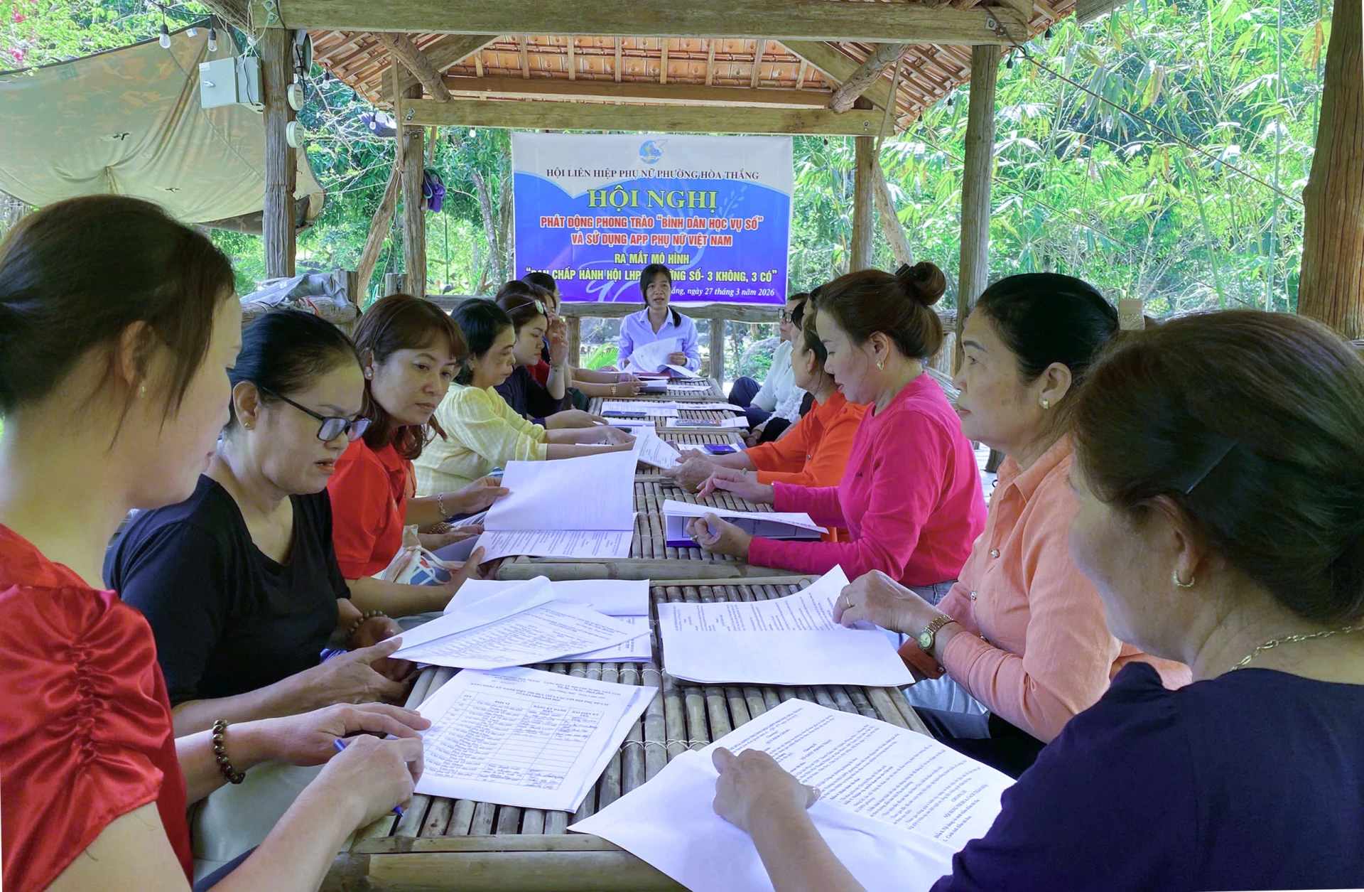 Ngày 27-3, Hội Liên hiệp Phụ nữ (LHPN) phường Hòa Thắng tổ chức phát động phong trào “Bình dân học vụ số”, triển khai sử dụng ứng dụng “Phụ nữ Việt Nam” và ra mắt mô hình “Ban Chấp hành Hội LHPN phường số - 3 không, 3 có”.