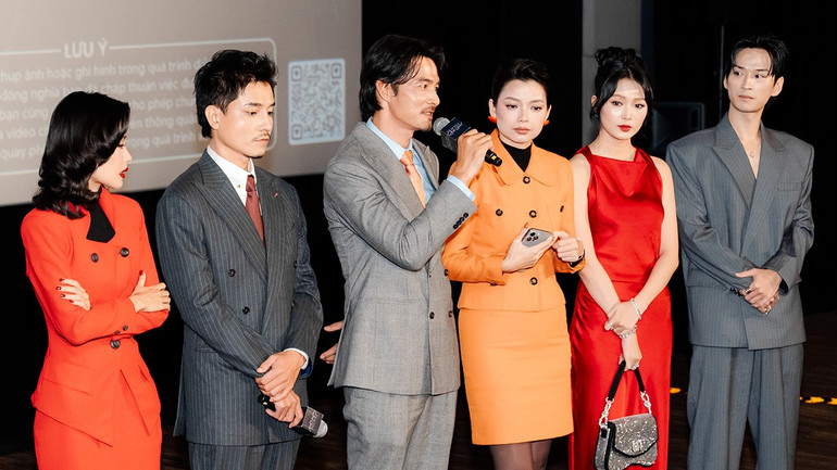 Đoàn làm phim "Trái tim què quặt" tại buổi ra mắt. (Ảnh: Galaxy Studio)