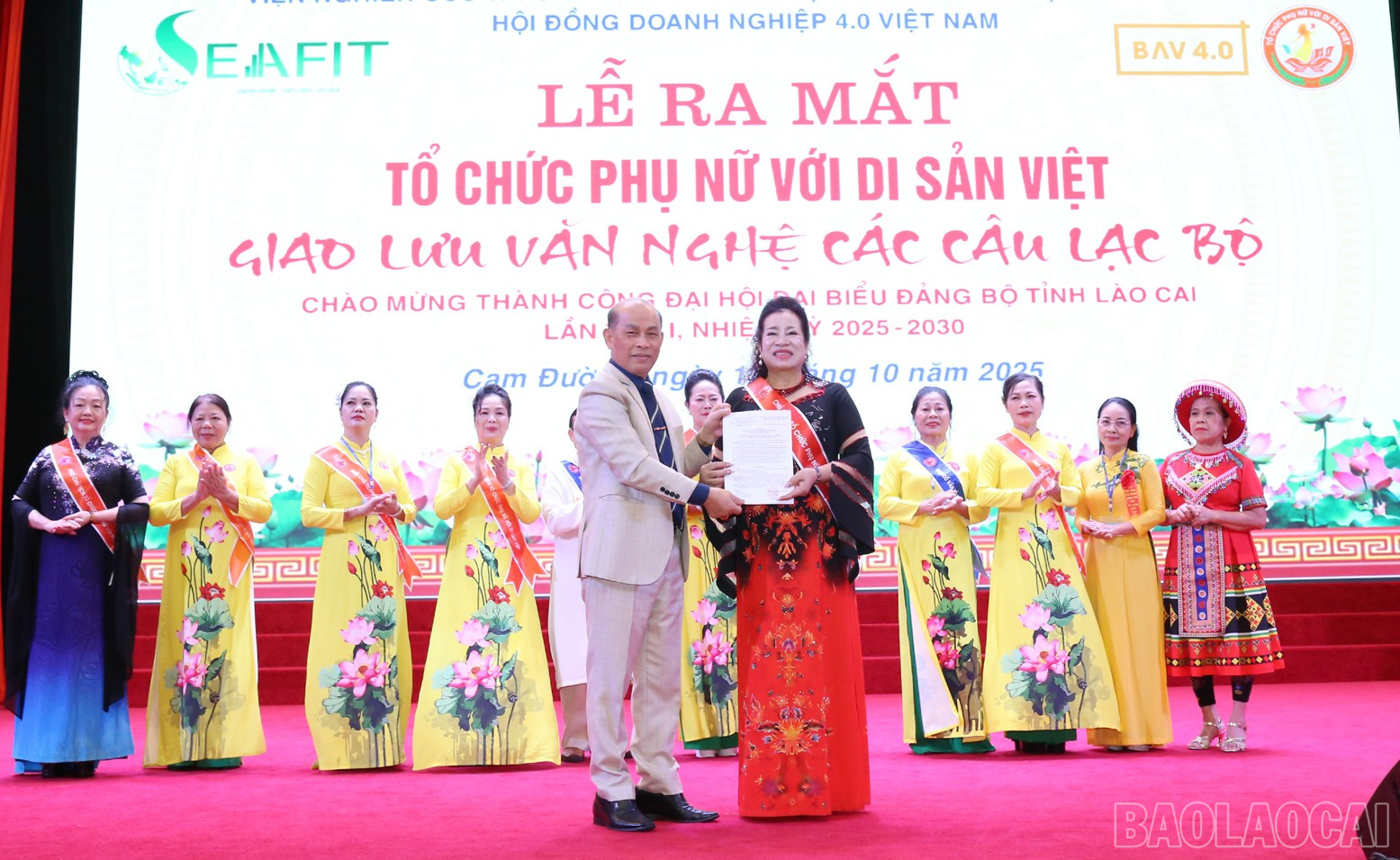 Tại buổi lễ, Viện Nghiên cứu Tài chính, Đầu tư và Hợp tác Thương mại Đông Nam Á đã công bố các quyết định thành lập Ban sáng lập, Ban cố vấn và Ban lãnh đạo Tổ chức Phụ nữ với Di sản Việt tại Lào Cai, đồng thời ra mắt Ban lãnh đạo gồm Chủ tịch Nguyễn Thị Nhẫn, 5 Phó Chủ tịch và 2 Ủy viên.