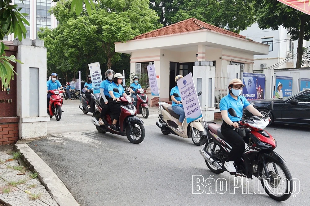 Ngay sau lễ ra quân, đoàn diễu hành đã tuyên truyền lưu động trên địa bàn phường, xã: Việt Trì, Nông Trang, Thanh Miếu, Vân Phú, Hy Cương và trực tiếp tuyên truyền vận động người tham gia BHXH tự nguyện, BHYT hộ gia đình.