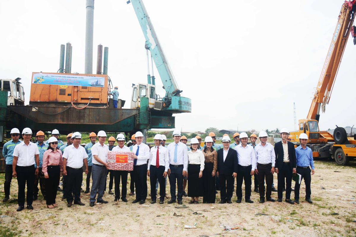 Lãnh đạo phường Hòa Xuân tặng quà động viên Chủ đầu tư, nhà thầu ra quân thi công đầu năm Dự án nhà ở xã hội Khu dân cư Nam cầu Cẩm Lệ.