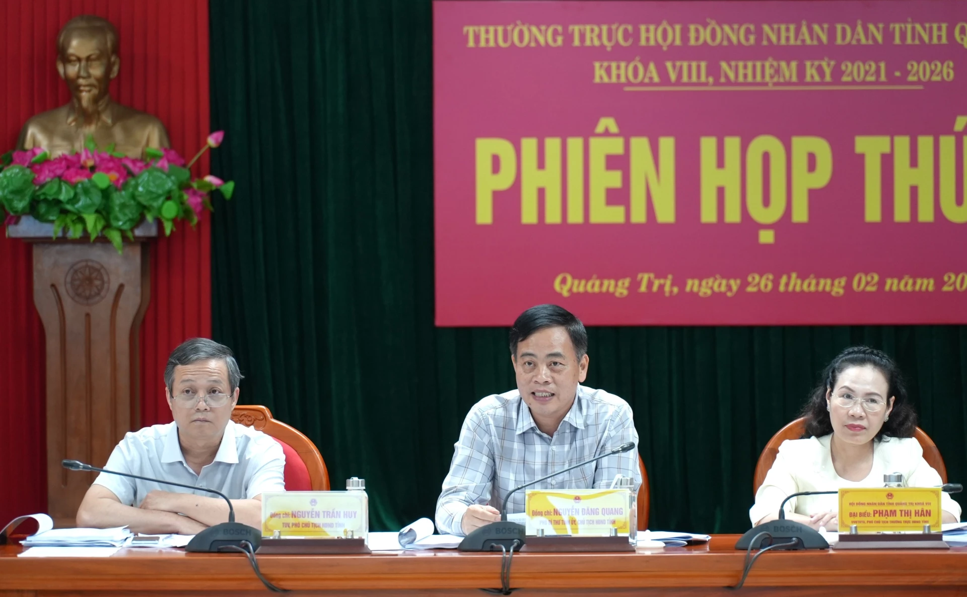 Đồng chí Nguyễn Đăng Quang, Chủ tịch HĐND tỉnh và các đồng chí trong Thường trực HĐND tỉnh chủ trì phiên họp - Ảnh: T.Đ