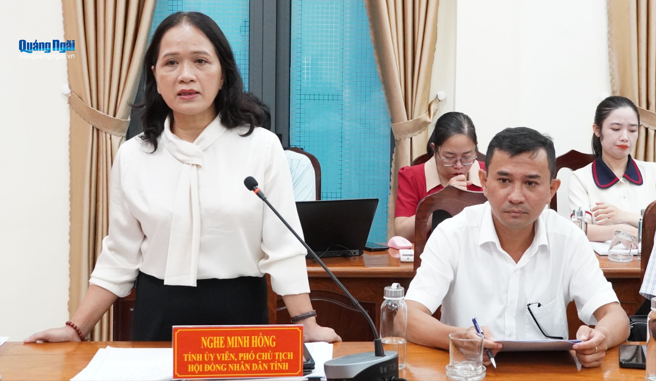 Phó Chủ tịch HĐND tỉnh Nghe Minh Hồng trao đổi tại cuộc họp.