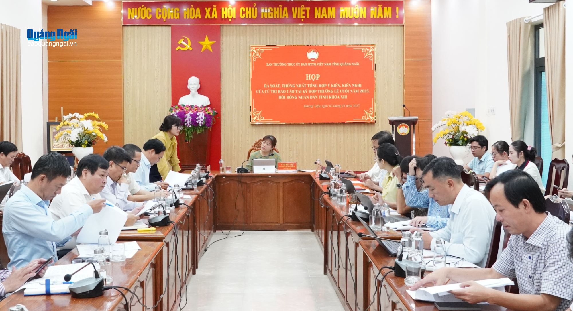 Ủy ban MTTQ Việt Nam tỉnh tiếp thu ý kiến đóng góp của các sở, ngành nêu tại cuộc họp. Các sở, ngành chủ động rà soát, xem xét các ý kiến, kiến nghị của cử tri, xem ý kiến nào đã trả lời, ý kiến nào chưa trả lời thì thông tin cho Ủy ban MTTQ Việt Nam tỉnh trước ngày 10/11/2025.