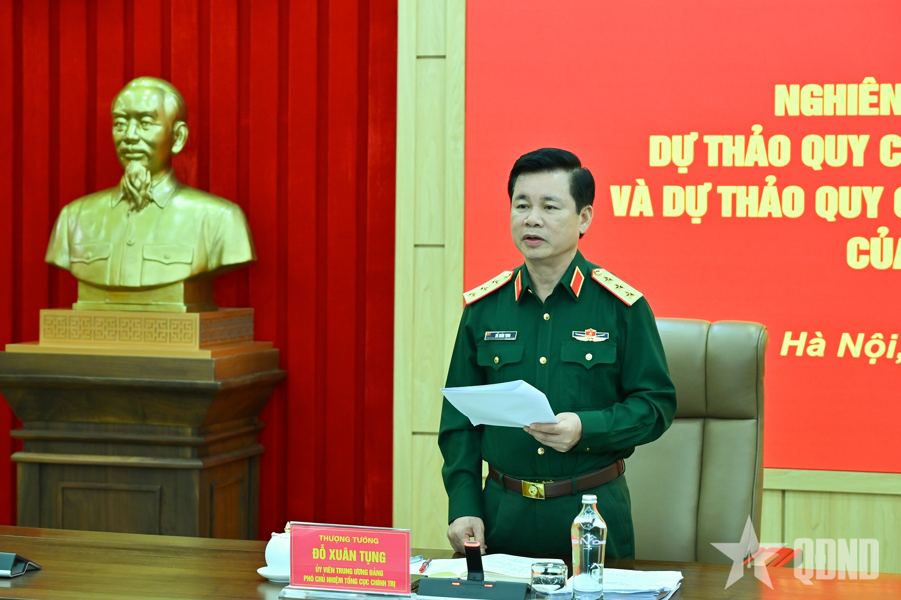 Về hồ sơ trình Thường vụ Quân ủy Trung ương, Thượng tướng Đỗ Xuân Tụng yêu cầu chuẩn bị đầy đủ, gồm tờ trình, dự thảo quy chế và bảng so sánh chi tiết giữa quy chế cũ và dự thảo mới, trong đó nêu rõ nội dung, lý do sửa đổi để thuận lợi cho việc xem xét, quyết định.