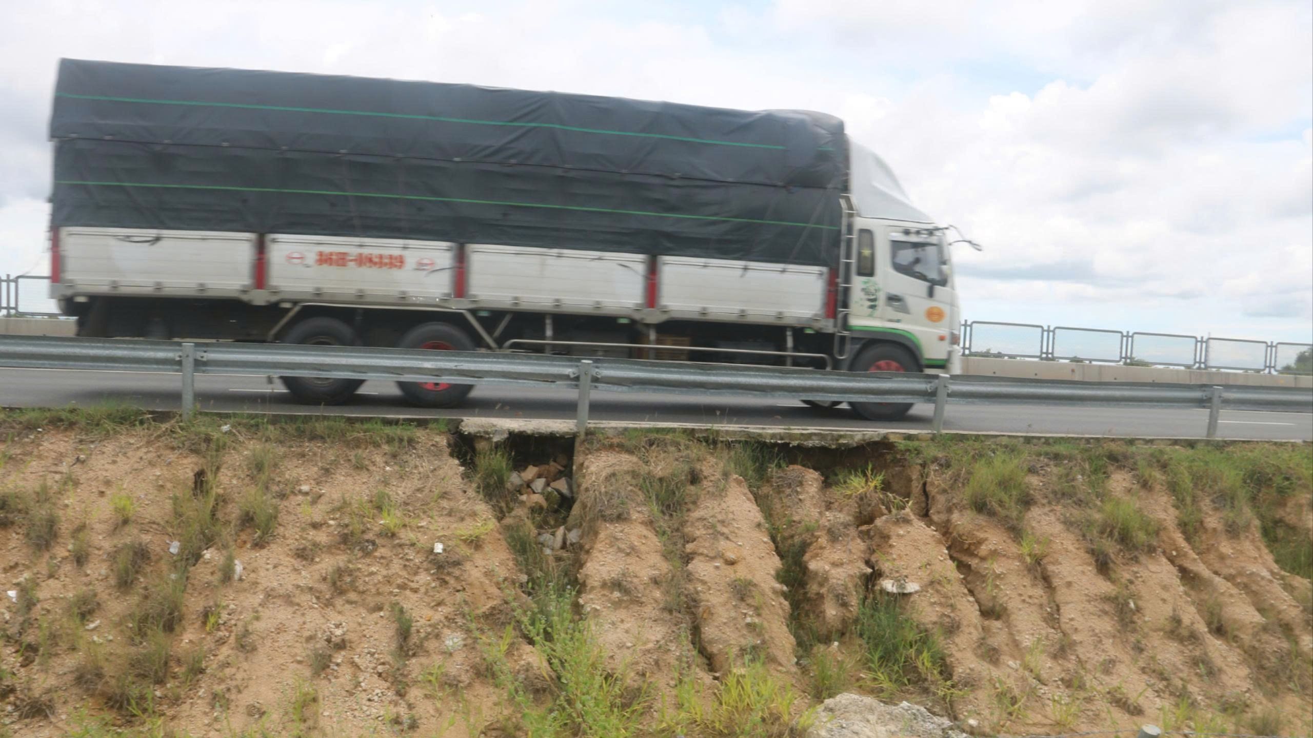 Vị trí xảy ra xói lở mép đường trên tuyến đường cao tốc Vĩnh Hảo - Phan Thiết