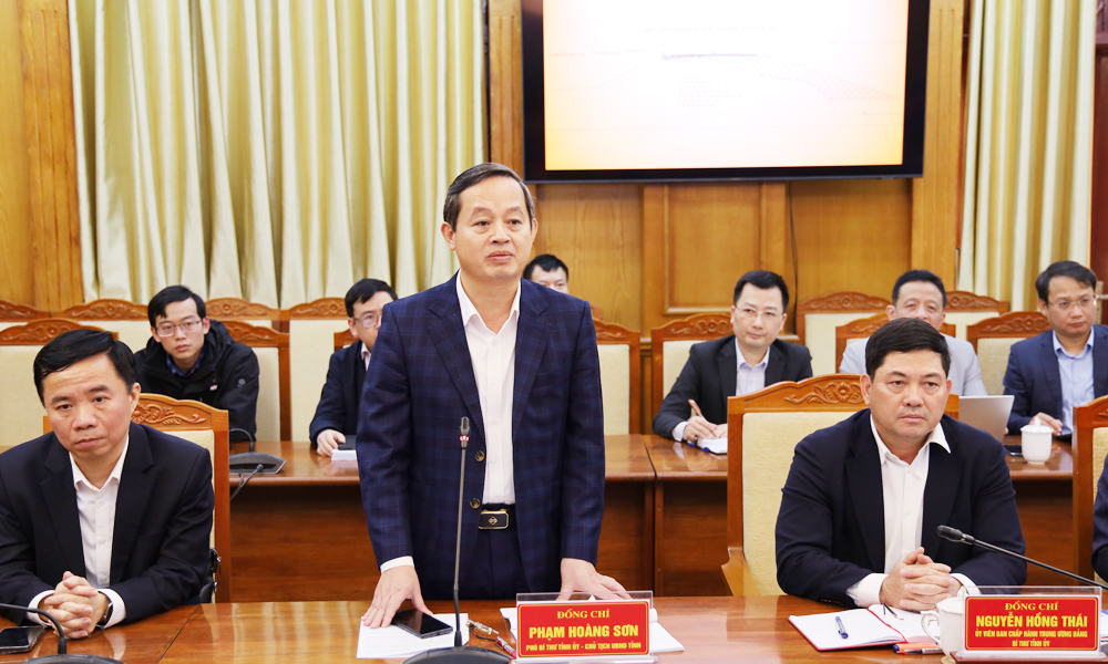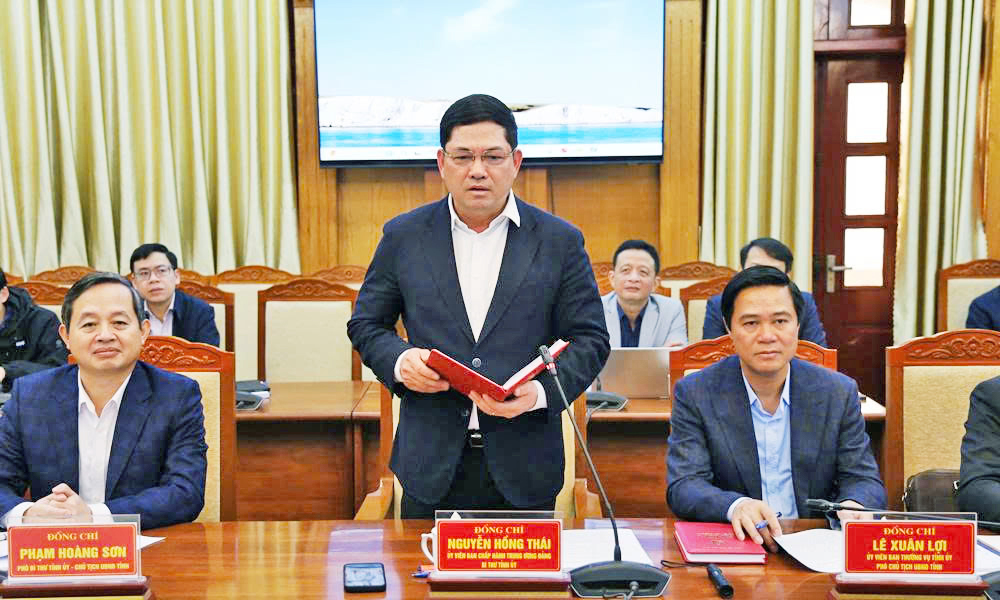 Bí thư Tỉnh ủy Nguyễn Hồng Thái phát biểu tại buổi làm việc.