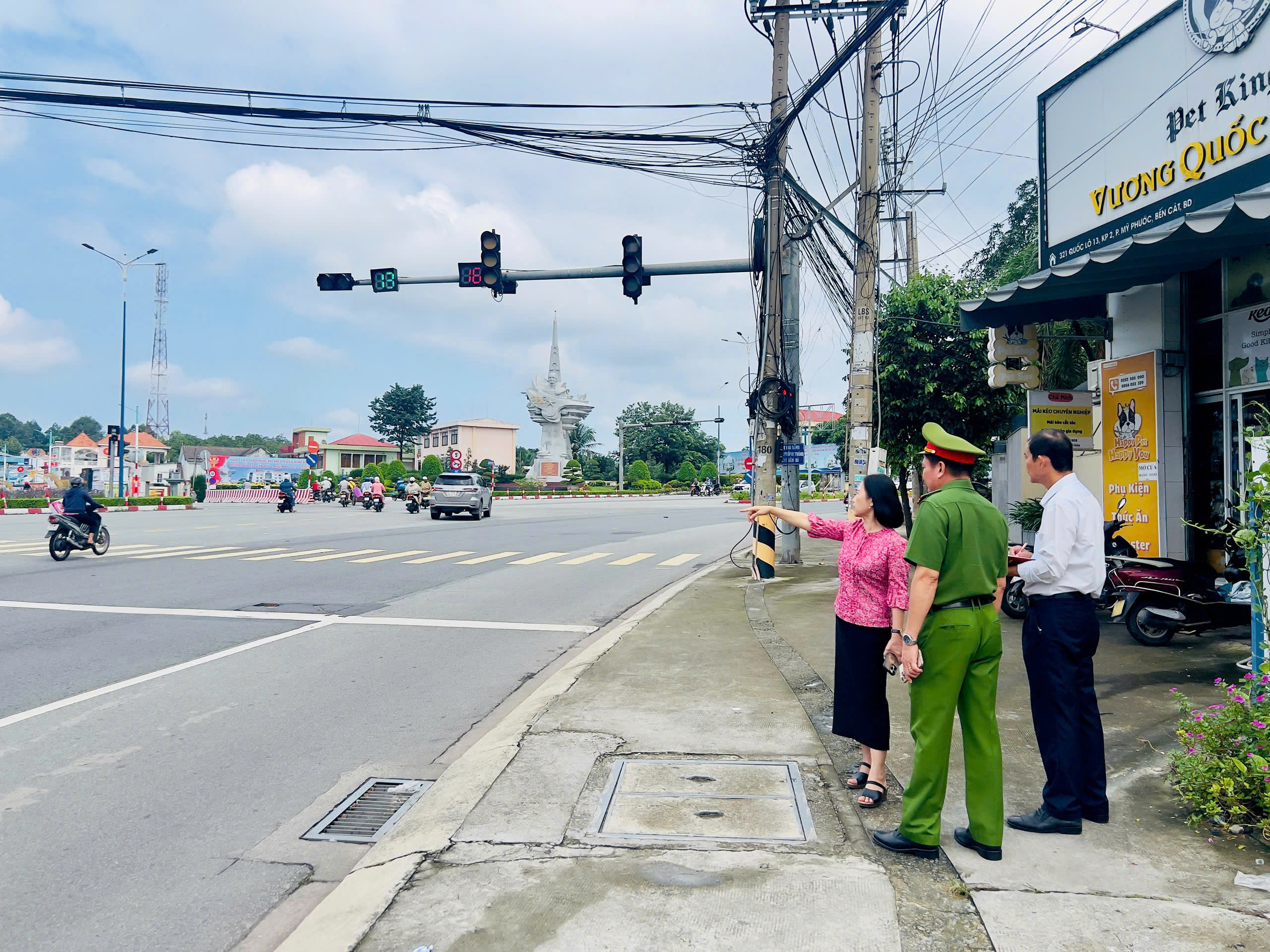 Trước đó, bà Trần Thị Thảo cùng lực lượng chức năng phường khảo sát thực tế các "điểm nóng", "điểm đen" về giao thông trên địa bàn