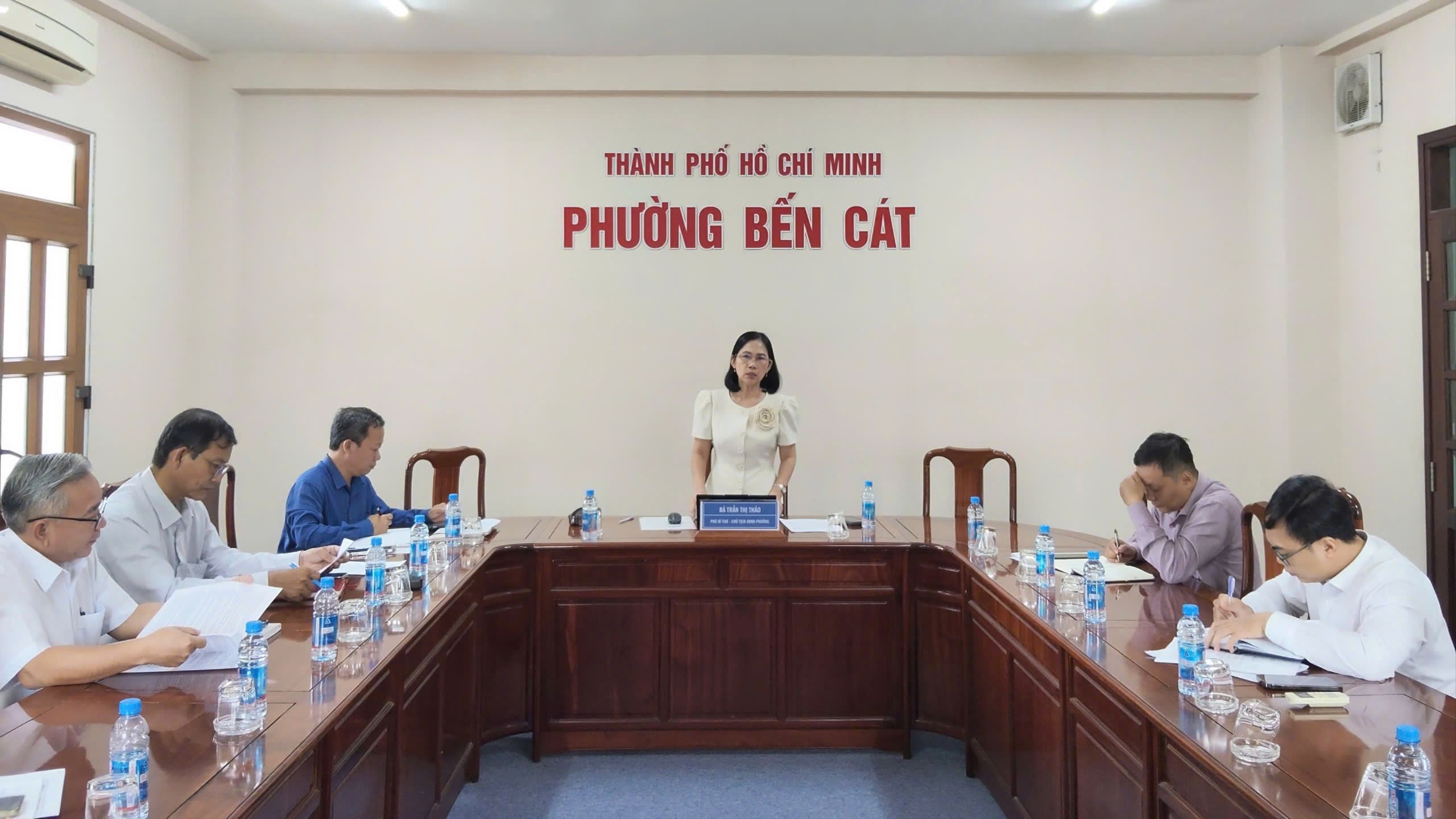 Ngày 8-10, Phó Bí thư, Chủ tịch UBND phường Bến Cát Trần Thị Thảo chủ trì cuộc họp nghe Phòng Kinh tế, Hạ tầng và Đô thị báo cáo đề xuất những nội dung liên quan công tác đảm bảo an toàn giao thông trên địa bàn phường.