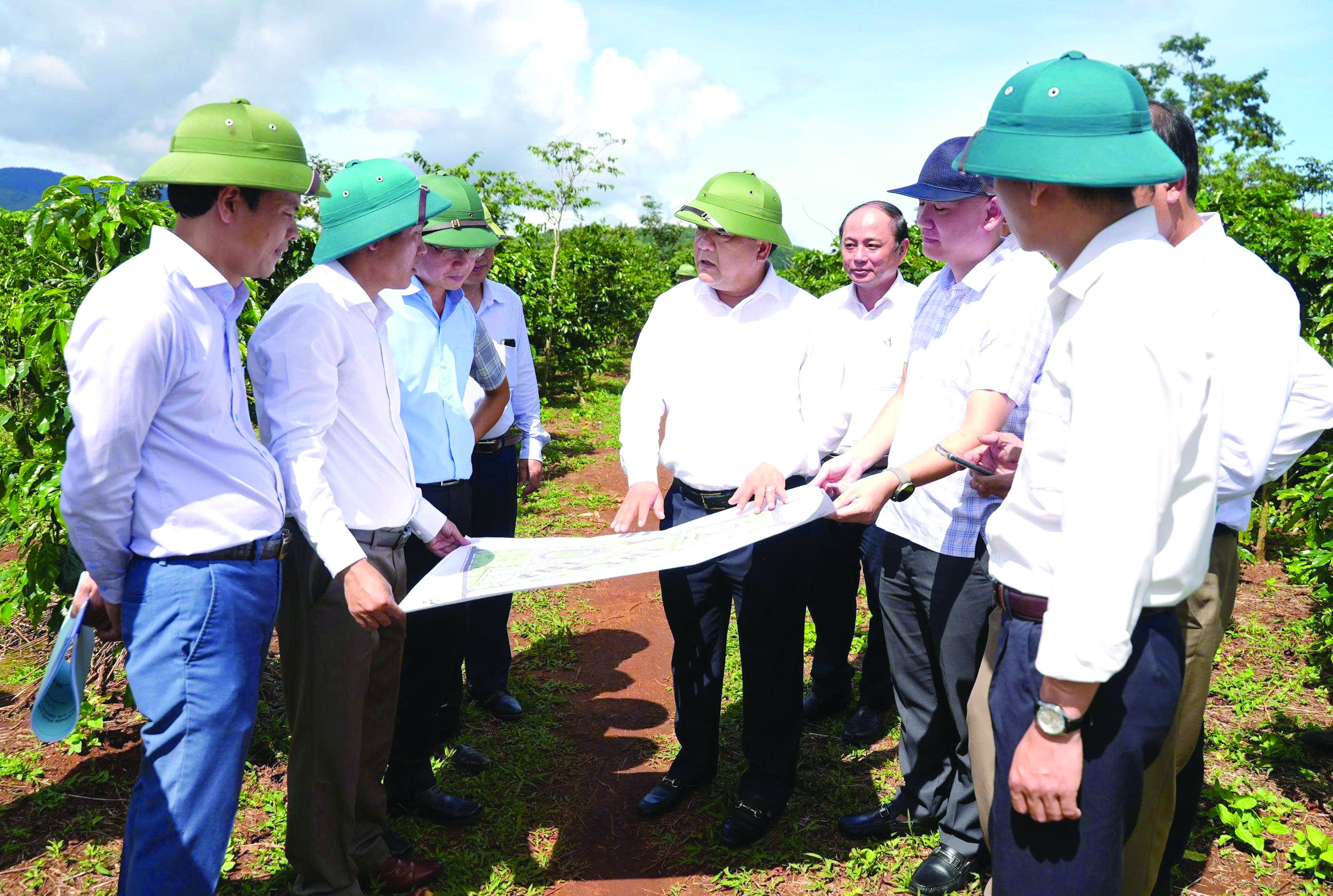 Đồng chí Trần Phong, Chủ tịch UBND tỉnh kiểm tra địa điểm dự kiến xây dựng Trường PTDT nội trú Tiểu học và THCS Hướng Phùng, ở thôn Doa Củ, xã Hướng Phùng - Ảnh: TRUNG ĐỨC
