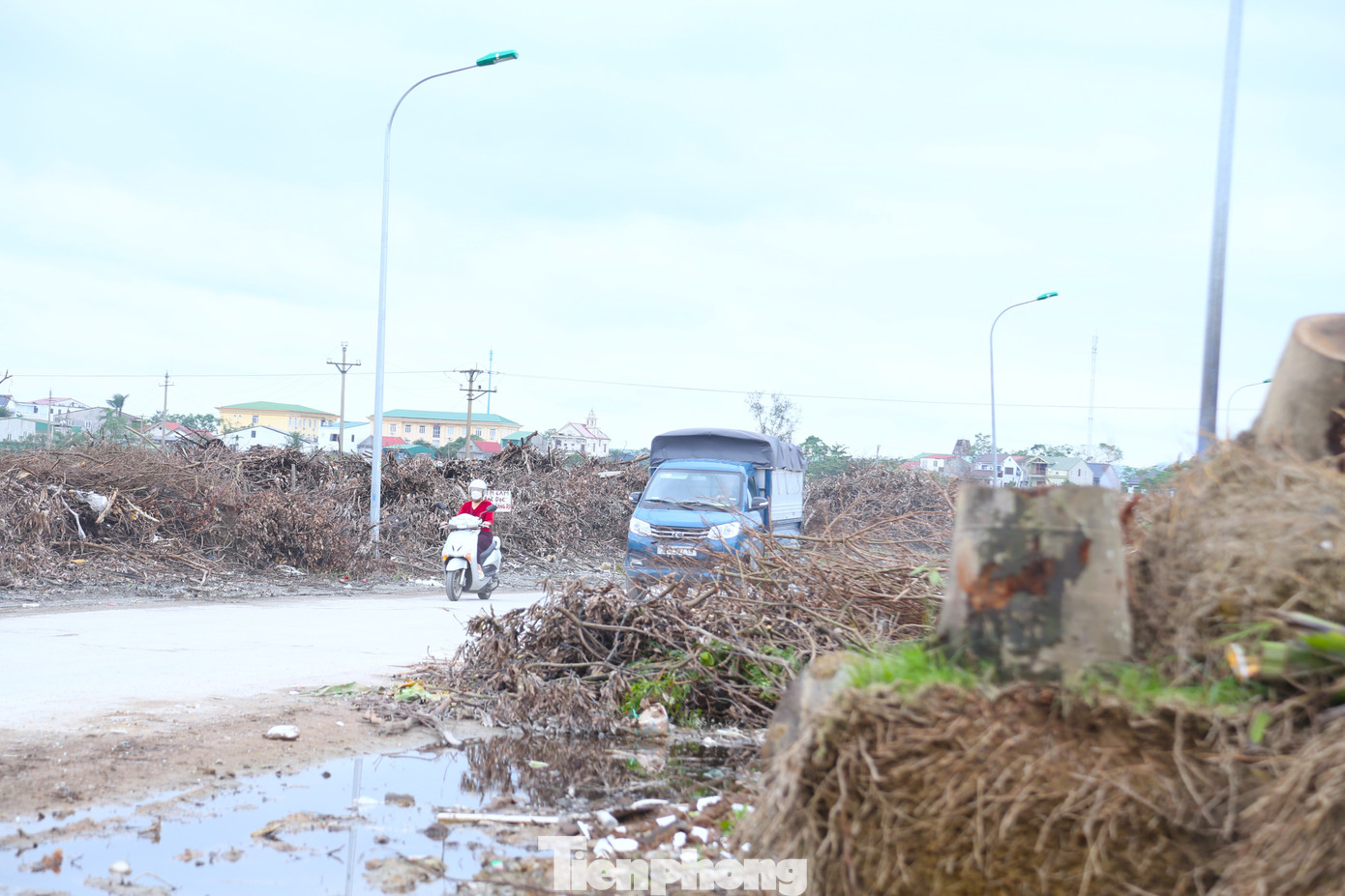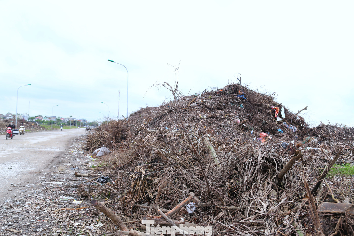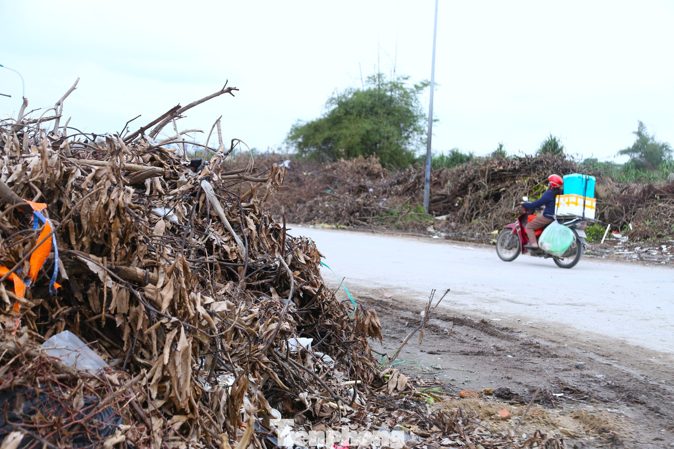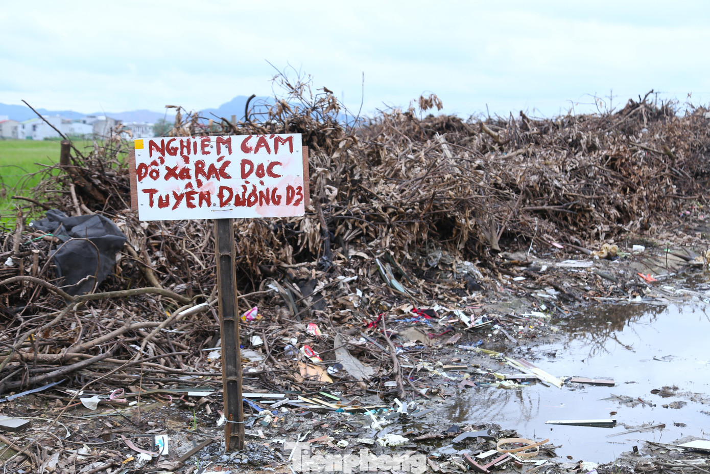 Ghi nhận của phóng viên, lượng lớn thân, cành cây đã được tập kết dọc hai bên đường D3, kéo dài gần hết tuyến. Tại một số khu vực, rác thải chất cao như bức tường, tràn cả xuống lòng đường. Trời mưa, nước rỉ rác loang ra, đen đặc, bốc mùi khó chịu.