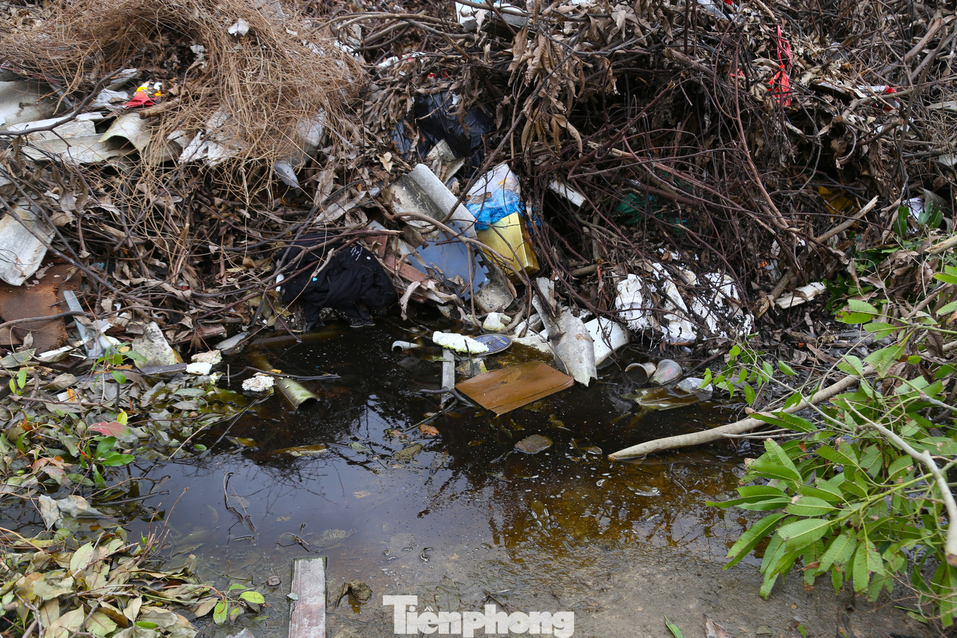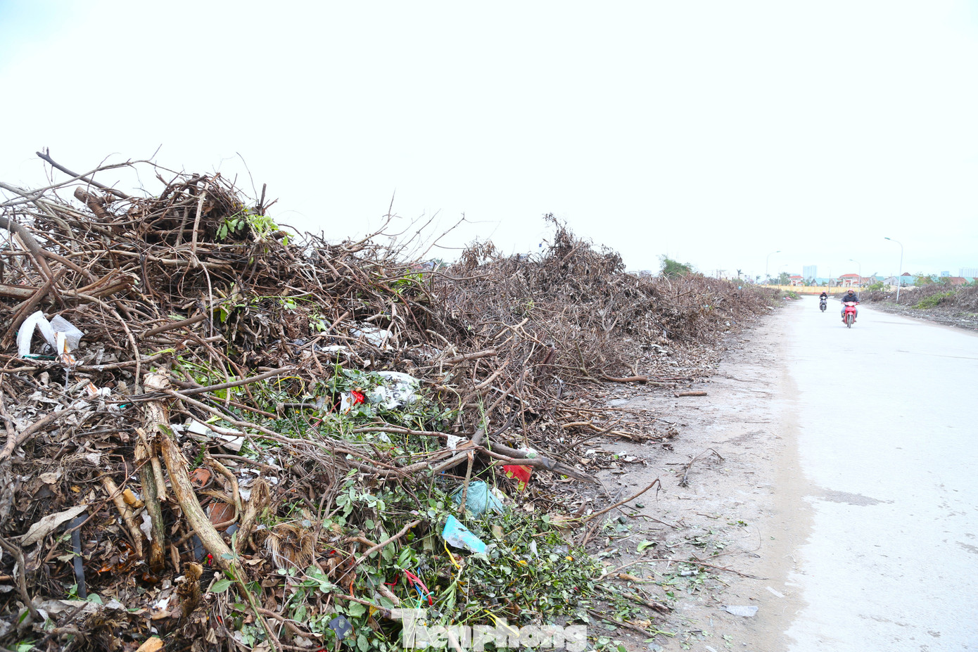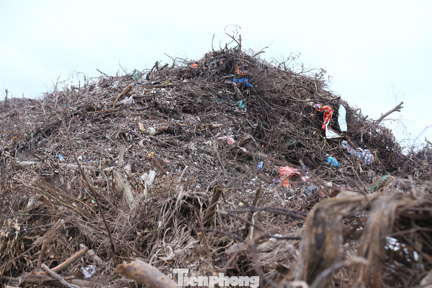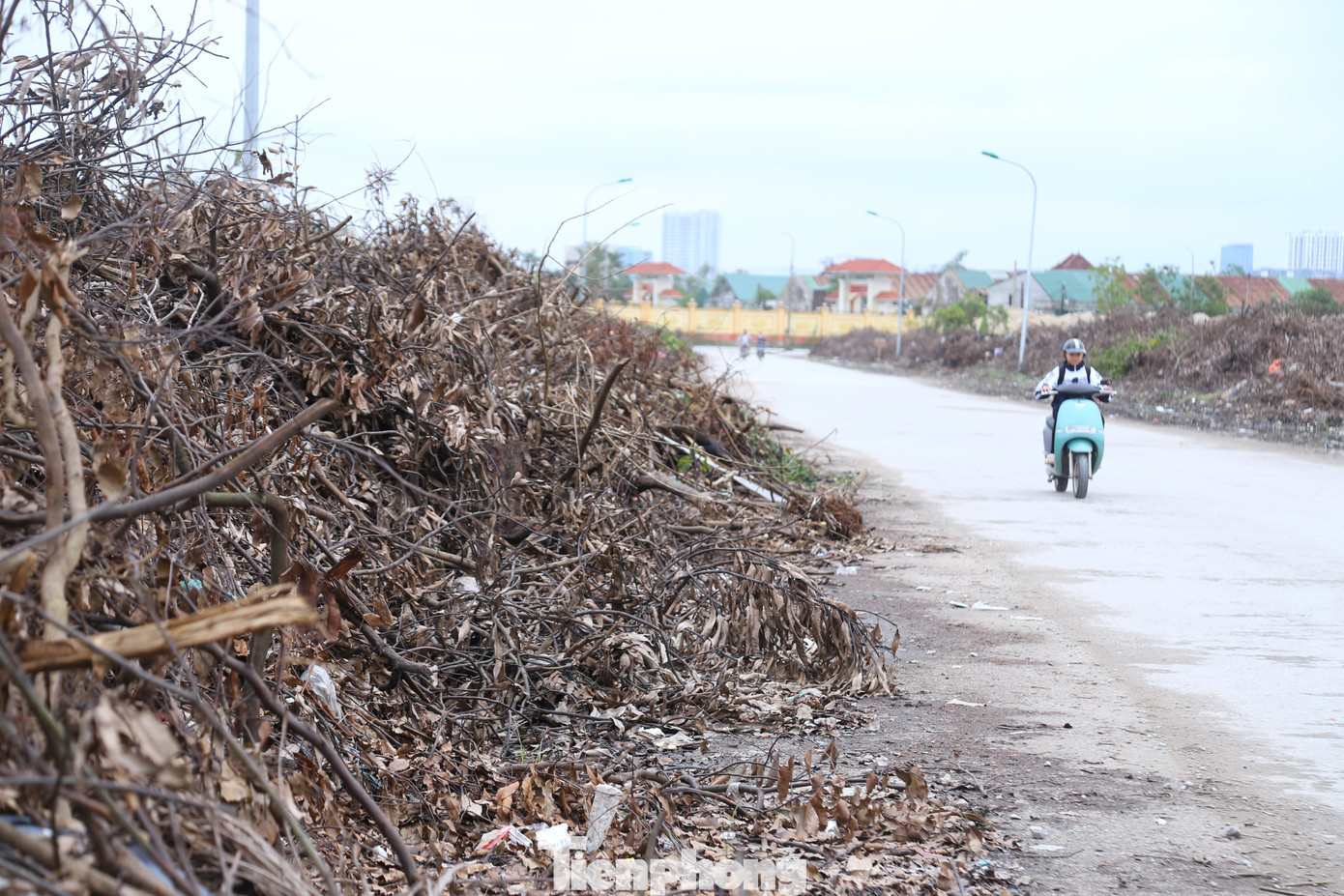 Ghi nhận của phóng viên, lượng lớn thân, cành cây đã được tập kết dọc hai bên đường D3, kéo dài gần hết tuyến. Tại một số khu vực, rác thải chất cao như bức tường, tràn cả xuống lòng đường. Trời mưa, nước rỉ rác loang ra, đen đặc, bốc mùi khó chịu.