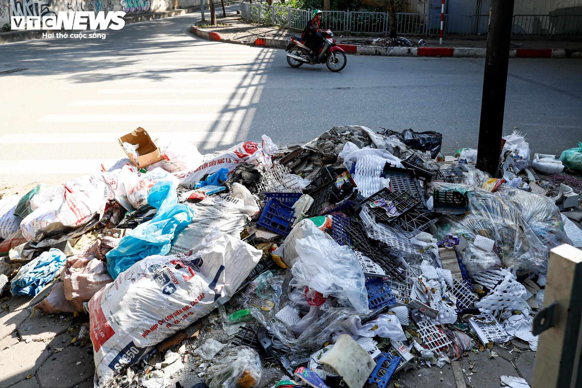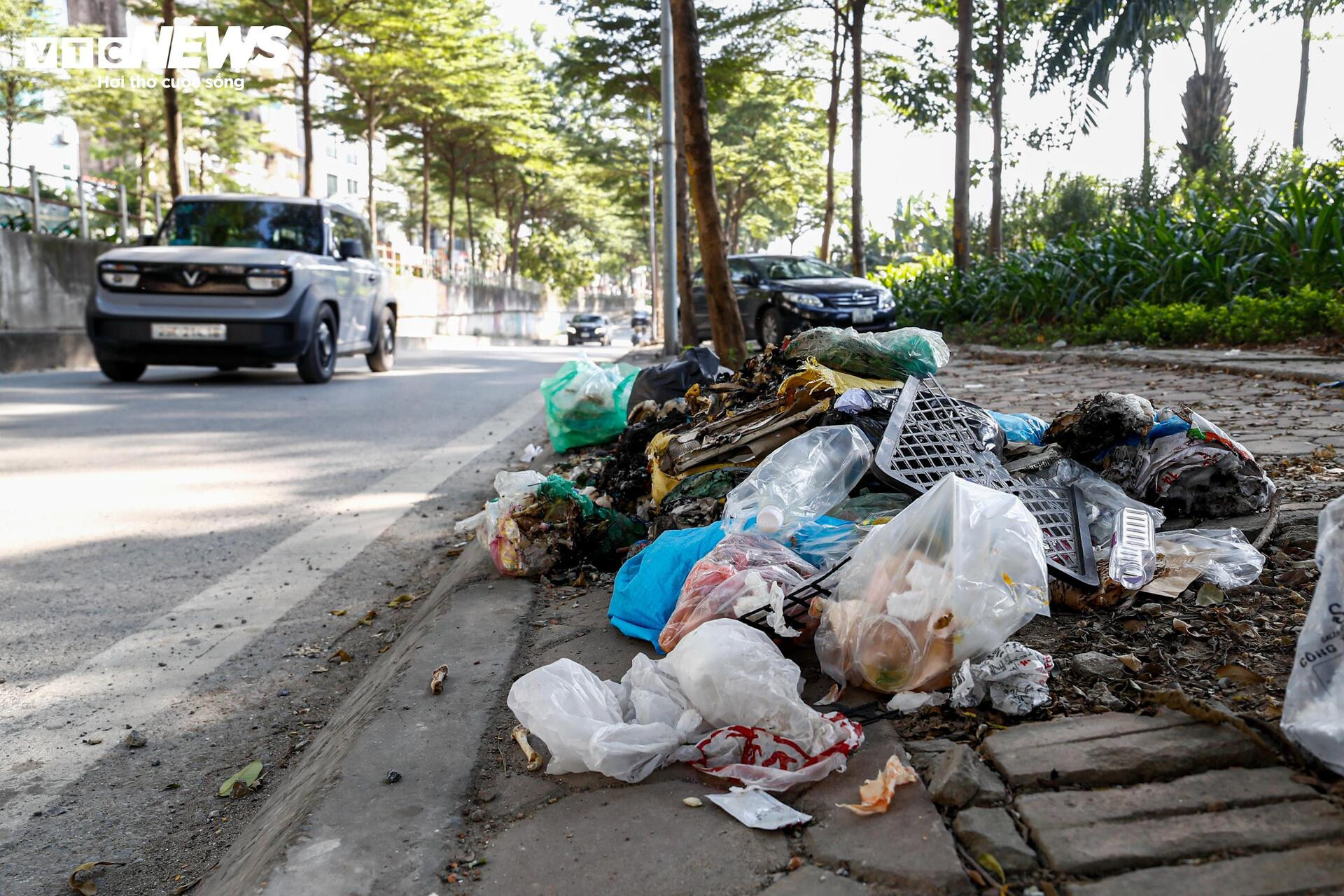 Vỉa hè cạnh Trường Đại học Thăng Long cũng bị rác thải bủa vây.
