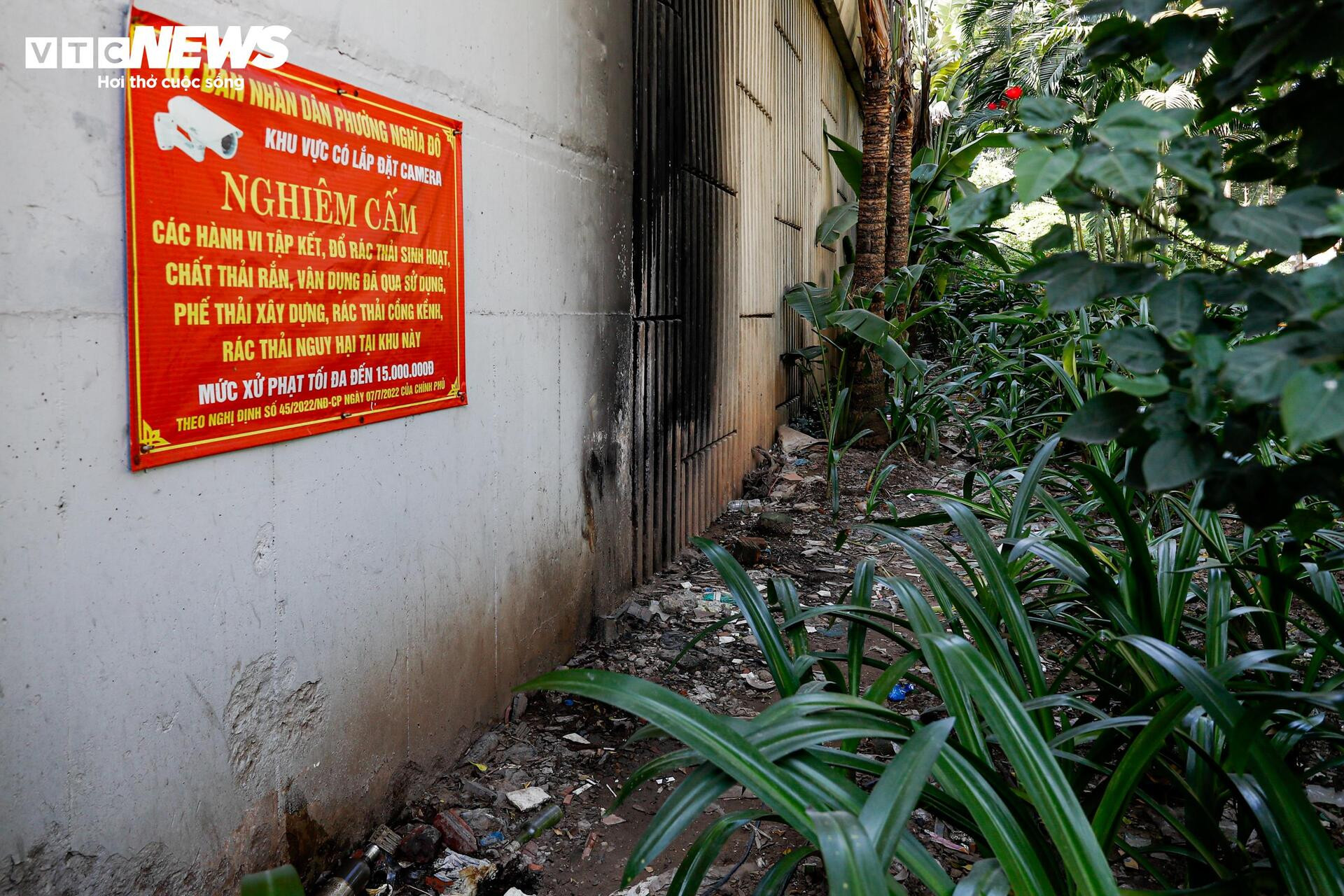 Trước tình trạng rác thải bị đổ trộm ra đường, UBND phường Nghĩa Đô đã dựng nhiều bảng cảnh báo cỡ lớn và lắp đặt camera để kiểm soát và xử lý vi phạm.