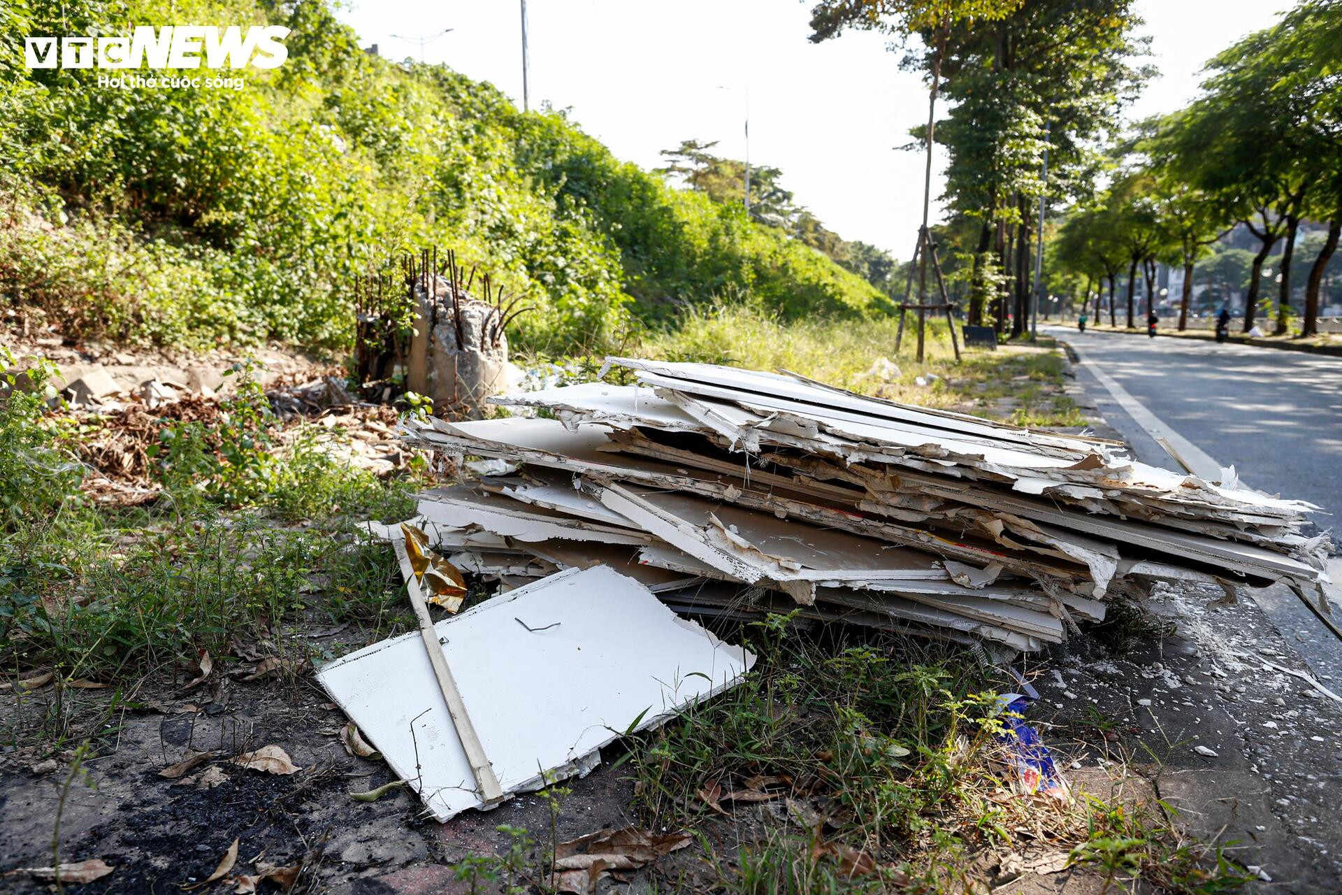 Tương tự, dải phân cách đường Vành đai 3 (đoạn Khuất Duy Tiến - Nguyễn Xiển) cũng ngập tràn rác thải xây dựng.