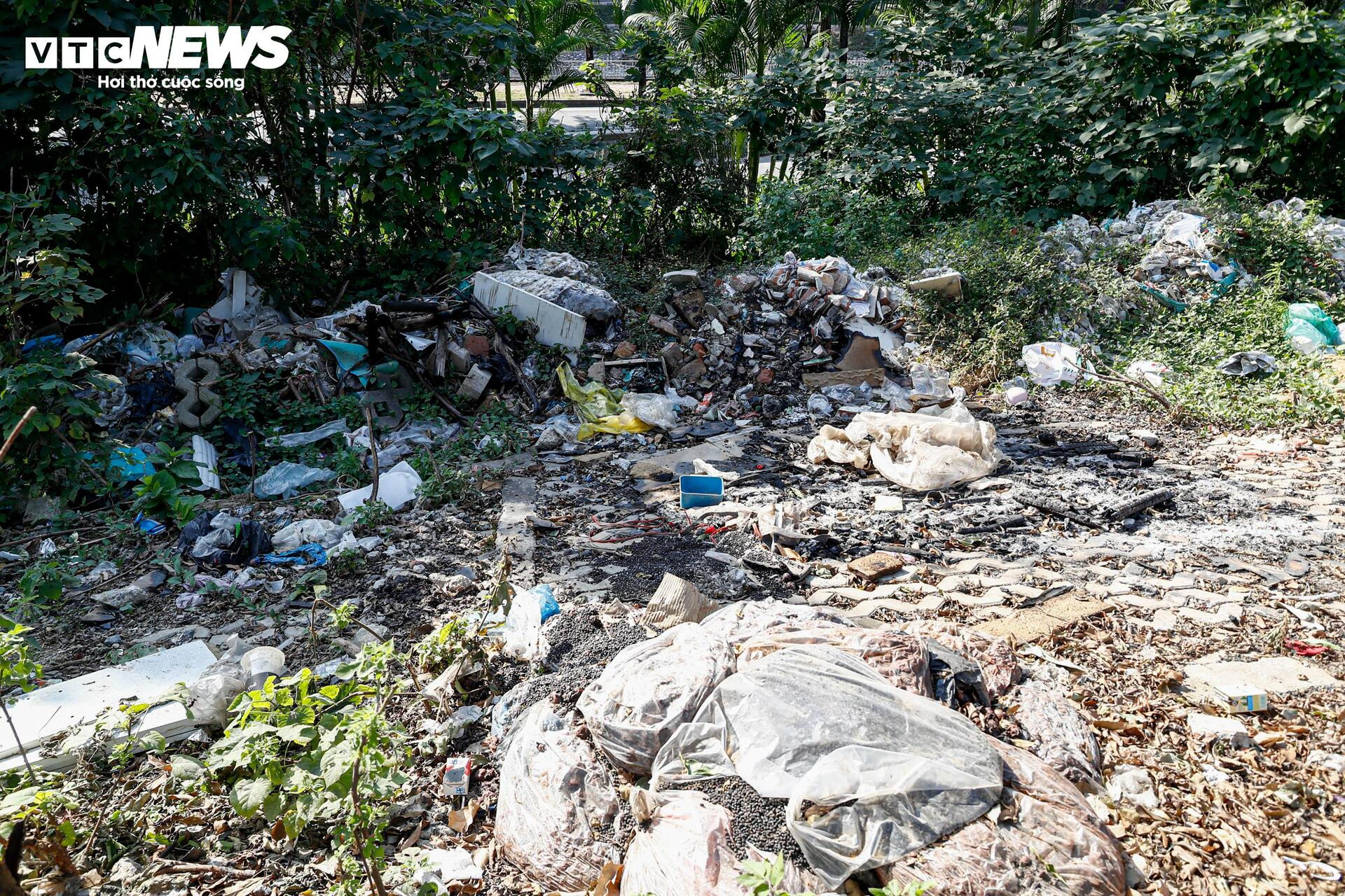 Đủ loại rác thải, vật dụng hư hỏng, bao tải gạch đá bị đổ trộm tràn lan, làm xấu cảnh quan Hà Nội.
