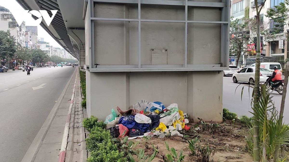 Dưới các trụ cầu rác vẫn còn rất nhiều, gây mất mỹ quan đô thị.