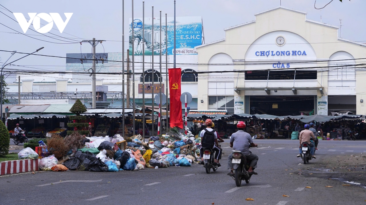 “Cứ chạy một vòng quanh chợ Long Hoa là thấy rác ngổn ngang, người ta chất đống… chỗ nào cũng thấy. Đơn vị thu gom khống lấy rác hộ gia đình nên người dân đem ra cổng chợ rồi trước cửa hàng chúng tôi để luôn… hôi thối kiểu này tết nhất buôn bán gì được”, ông Thi bức xúc.
