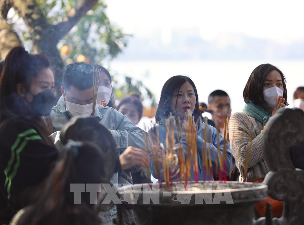 Người dân thành tâm cầu may mắn bình an tại Phủ Tây Hồ (Hà Nội). Ảnh tư liệu: Hoàng Hiếu - TTXVN