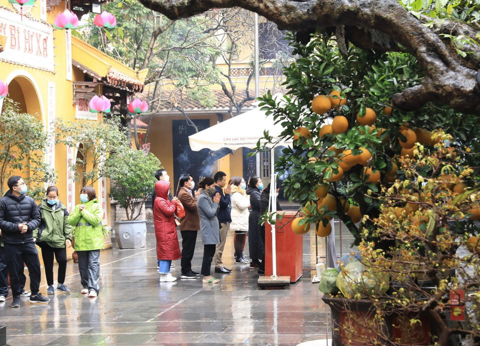 Phật tử đi chùa đầu năm. ảnh: Hoàng Hiếu/ TTXVN
