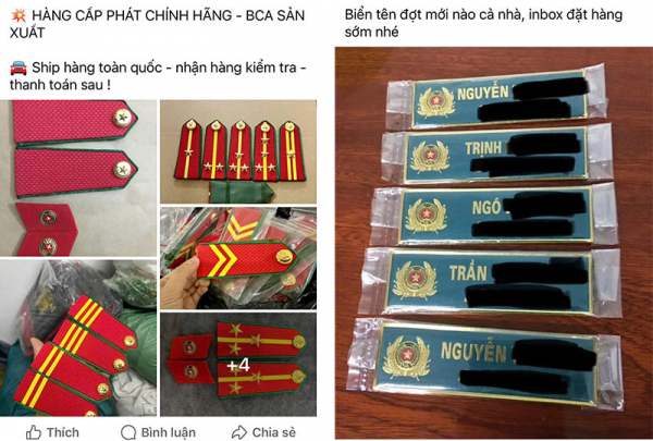 Chỉ cần gõ các từ khóa như “quân phục công an”, “quần áo bộ đội”, “đồng phục ngành”... sẽ cho ra hàng loạt hội nhóm mua bán với hàng chục nghìn thành viên. Tại các hội nhóm này, các tài khoản đăng bán đầy đủ các loại quân phục, thậm chí có cả cấp hiệu, bảng tên, phù hiệu, công cụ hỗ trợ, sổ sách, tài liệu... giống hệt trang phục đang được lực lượng chức năng sử dụng. Ngay cả huân chương, kỉ niệm chương, chứng minh CAND... cũng được mua bán trên mạng xã hội.
