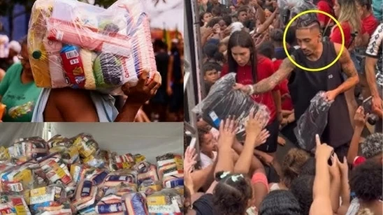 Raphinha phát quà cho người dân ở quê nhà Brazil. (Nguồn: YouTube)