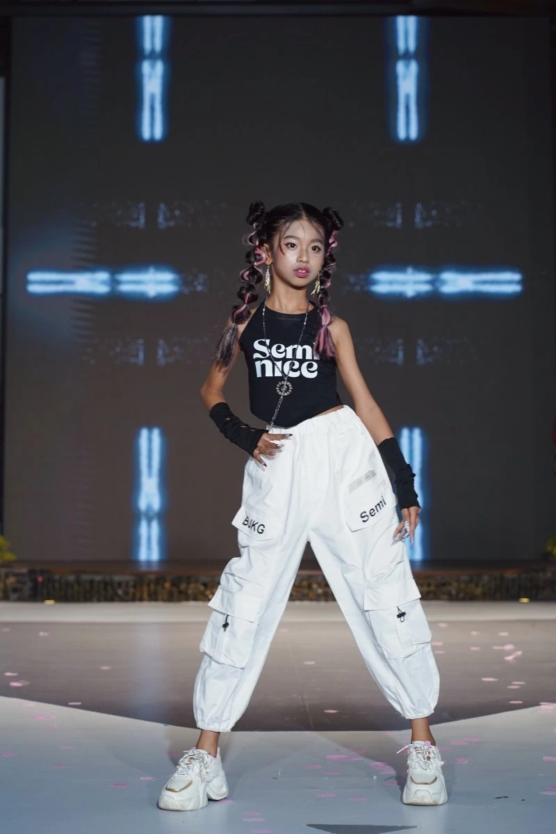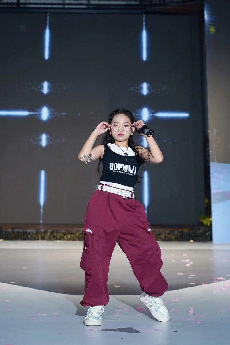 Trang phục giao thoa giữa thời trang ứng dụng và nghệ thuật trình diễn, mang hơi thở hiện đại, trẻ trung nhưng vẫn đảm bảo sự thoải mái và an toàn cho trẻ em. Màu sắc tươi sáng, bố cục hài hòa, cùng những điểm nhấn độc đáo trong từng chi tiết giúp tôn lên nét tự tin, năng động của thế hệ nhí ngày nay.