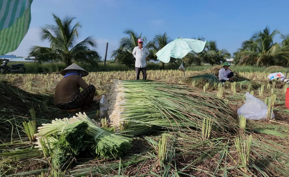 Nông dân vùng Tân Phú Đông thu hoạch sả