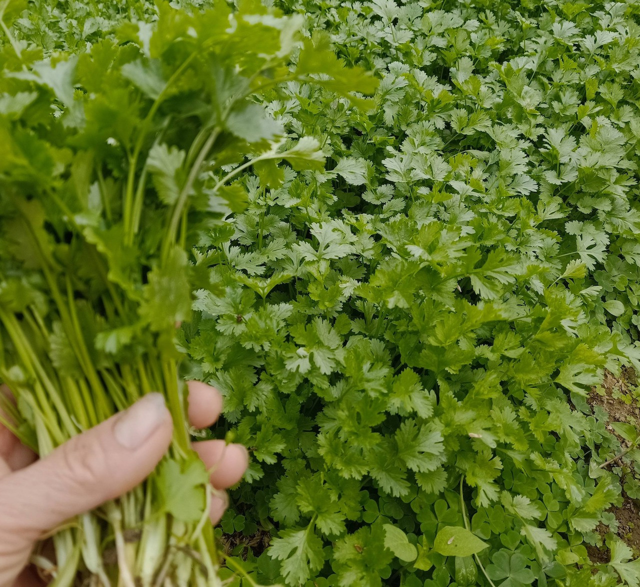 Rau mùi hỗ trợ tiêu hóa, giảm đầy hơi, chướng bụng. Ảnh: C. Ngọc