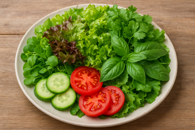 - Hỗ trợ kiểm soát cân nặng và đường huyết: Ăn rau sống thường tạo cảm giác no nhanh nhờ khối lượng lớn, ít calo. Chất xơ giúp làm chậm quá trình hấp thu đường, có lợi cho người muốn kiểm soát cân nặng hoặc phòng ngừa đái tháo đường type 2.
