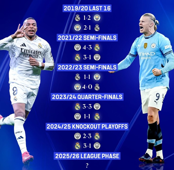Real Madrid và Man City đã trở thành một trong những cuộc đối đầu tiêu biểu của bóng đá hiện đại với những người không phải cổ động viên của hai đội. Kể từ sau đại dịch Covid-19, họ gặp nhau 9 lần với thành tích cân bằng: 3 thắng – 3 hòa – 3 thua.