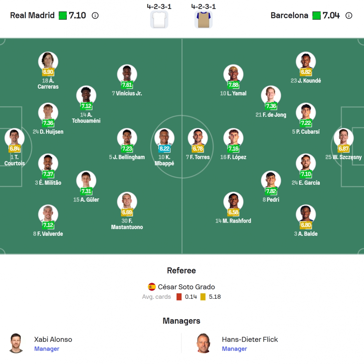 Trái lại, Real Madrid đang đạt phong độ cao với bộ đôi Mbappe – Vinicius liên tục tỏa sáng. Mbappe đã ghi 15 bàn mùa này và từng 11 lần chọc thủng lưới Barca trong sự nghiệp. Với lợi thế sân nhà cùng tinh thần quyết thắng, Los Blancos được đánh giá cao hơn trong cuộc đối đầu được cả thế giới chờ đợi.