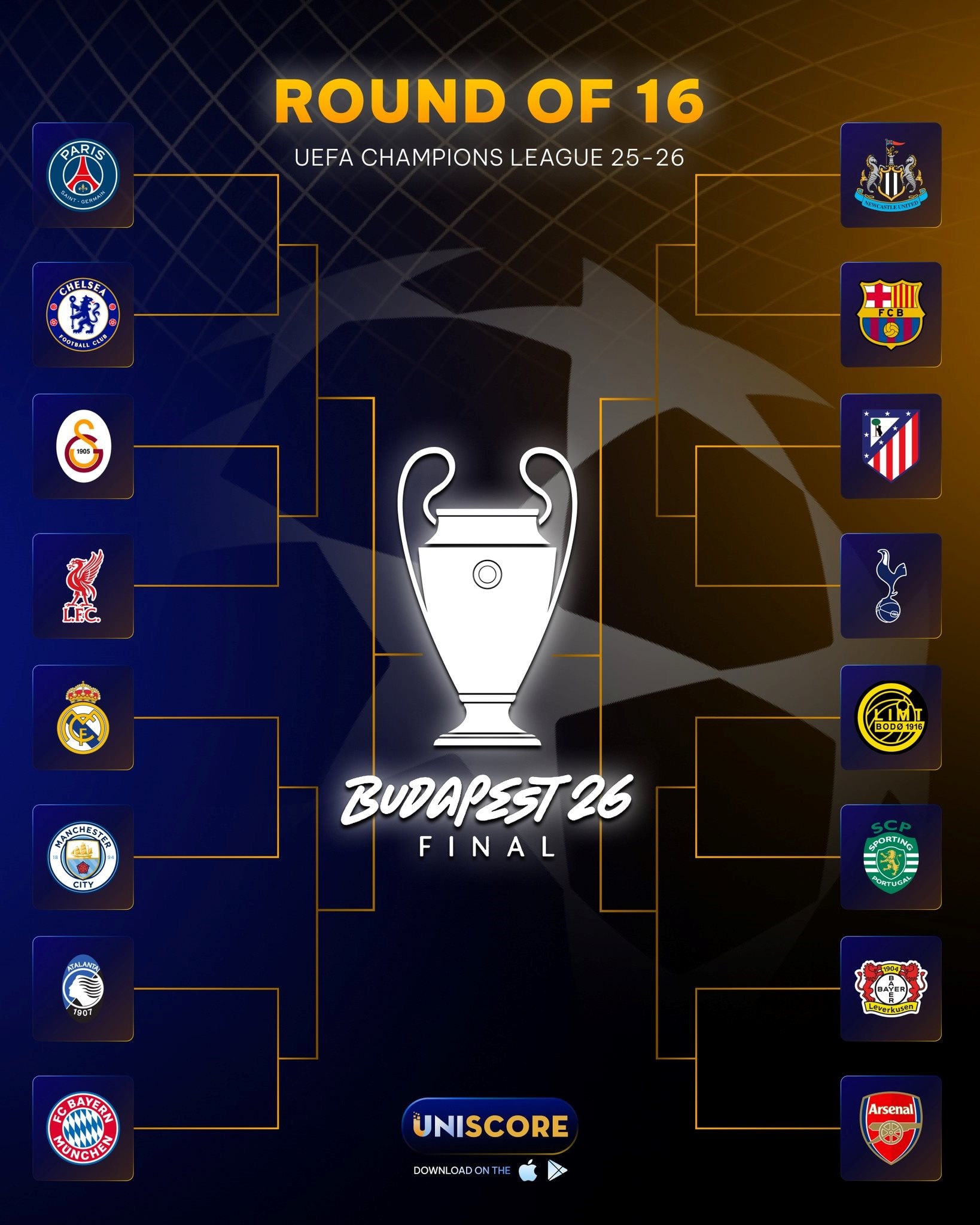 Theo nhánh đấu đã xác định, Real Madrid hoặc Man City có thể đối đầu Bayern Munich hoặc Atalanta tại tứ kết. Trong khi đó, PSG hoặc Chelsea có khả năng gặp Liverpool hoặc Galatasaray.