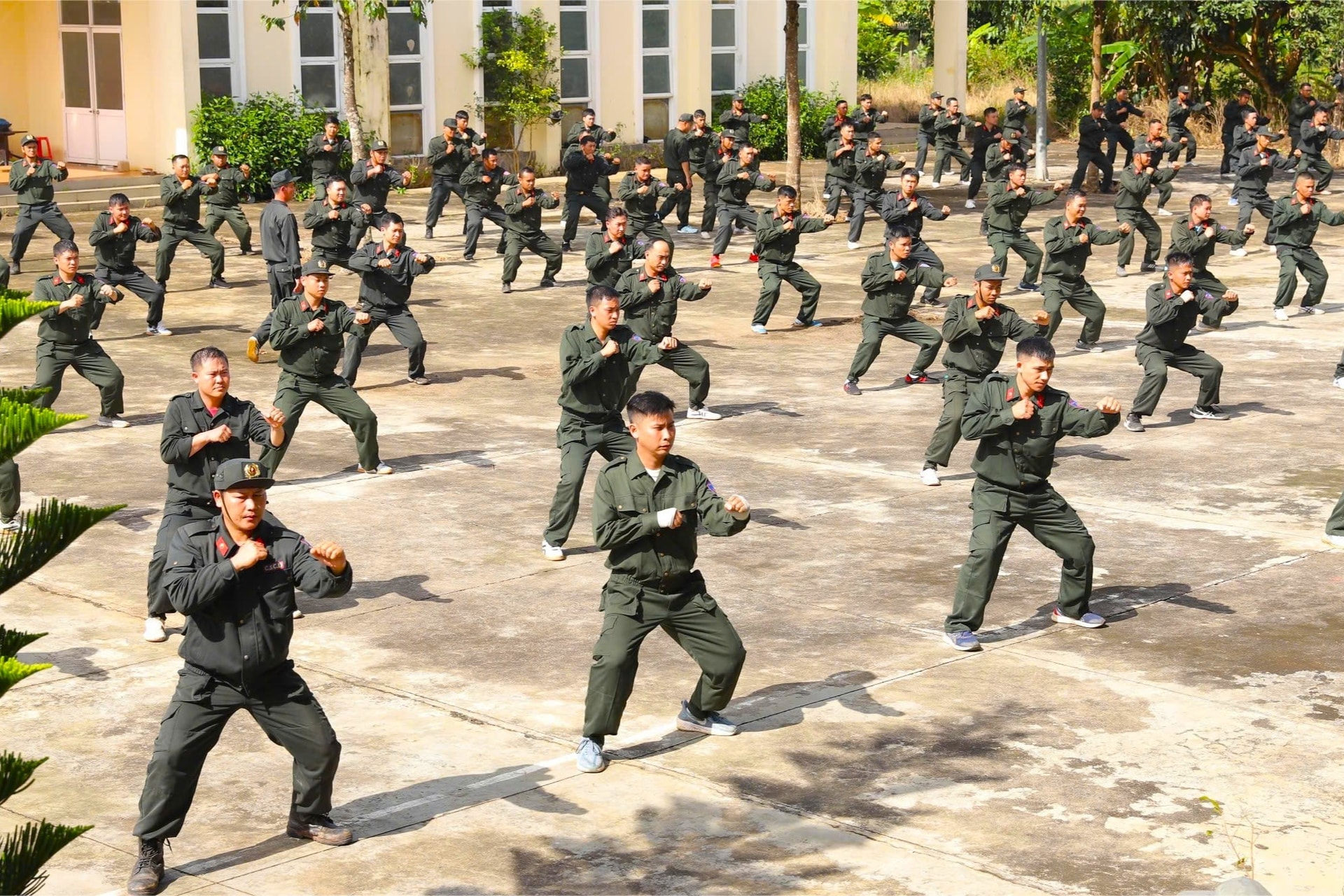 Cán bộ, chiến sĩ tập luyện các bài võ thuật Công an nhân dân